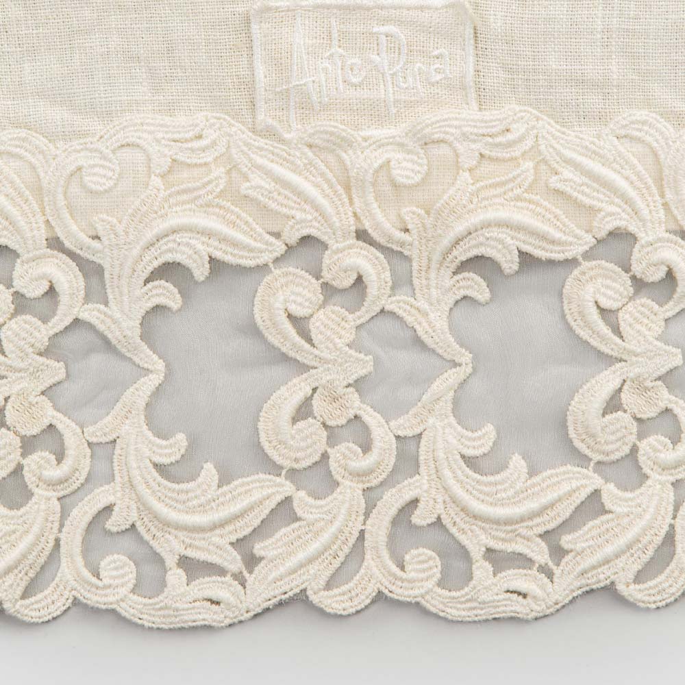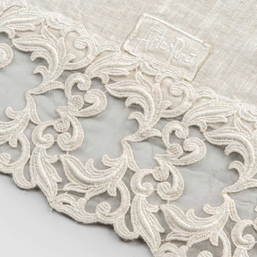 The value of tradition joins the modern lifestyle with this table runner in two finishes in heavy linen with folded edges and embellished with a Farnese lace weave.
