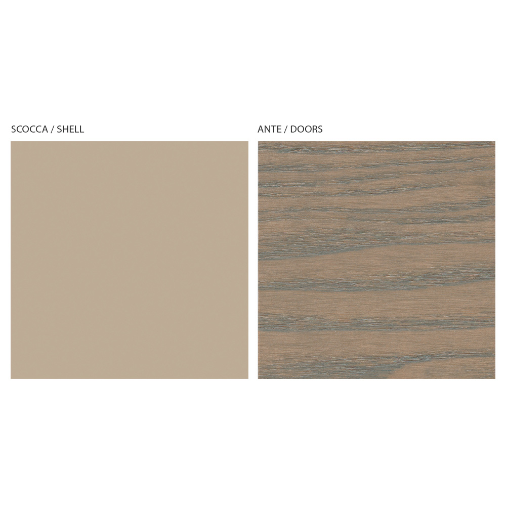 Living room sideboard with a modern style completely made in Italy composed of a ground frame base in iron with a mink finish, body in MDF with a mink finish and backrest in solid wood complete with doors in cappuccino -coloured ash blockboard made in Italy through the use of processes and quality materials combined with the refined taste of contemporary design. A versatile and original design designed to have various uses within different areas of the home, completing the furnishings in an exclusive way based on your tastes and needs.