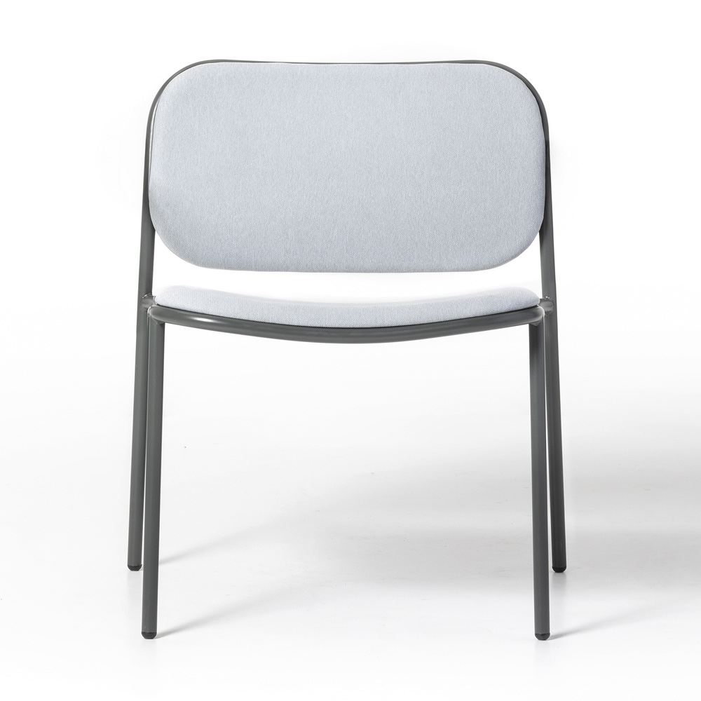 personality and materiality of the armchair. The possibility of stacking also emphasizes its functional side and makes it a perfect solution also for contract environments such as bars, restaurants and lounge areas in hotels where it is essential to be able to optimize spaces when the armchairs are not in use.