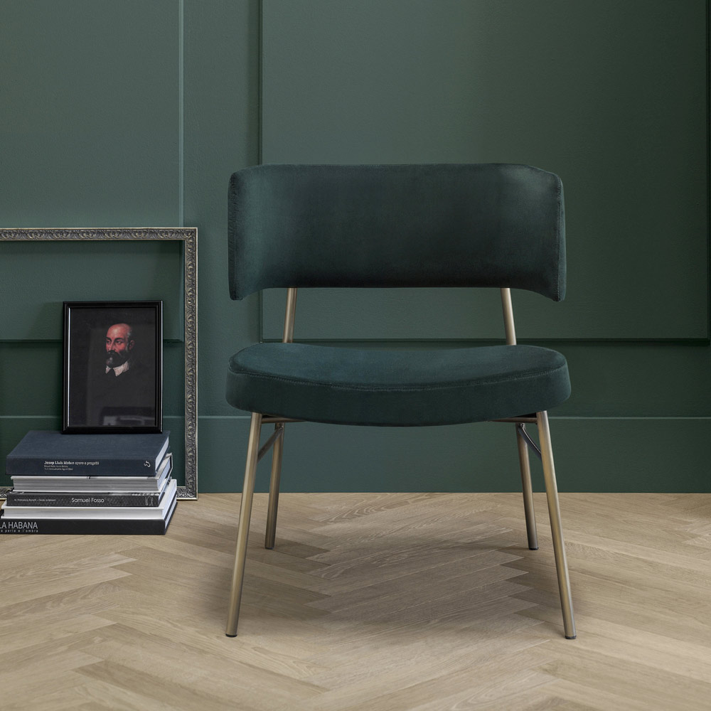Elegant armchair made in Italy with painted metal structure and seat upholstered in velvet . Comfort and solidity are the keywords that best describe this precious item, ideal for furnishing living areas focused on a modern and particularly refined taste. What is striking about its design is the perfect combination of simple lines that embrace the entire structure and the timeless refinement of velvet, a material of great value and with a fascinating appearance. Thanks also to its shape, this wonderful armchair ensures an ergonomic and welcoming seat, studied and designed to give moments dedicated to relaxation in which to let yourself be pampered.