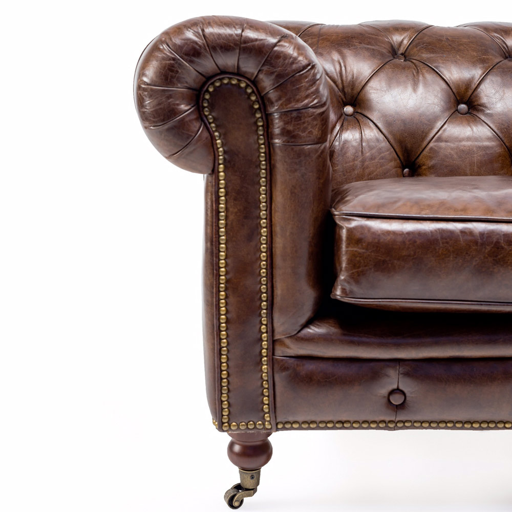This armchair is part of a collection that canò boast abeauty and timeless taste that resists the passing of fashions and suggestions of trends. Sturdy and sturdy structures, capitonnée workmanship, hand punching and nailing, real leather (leather flower) upholstery, worked with a special tanning specially designed to give the leather a vintage, aged look. The products in this collection are distinguished by the refined importance of the shapes and theprecious materials that animate them. They are seats that prove to be perfect for embellishing high-end furnishing environments that make elegance and character their prerogative.