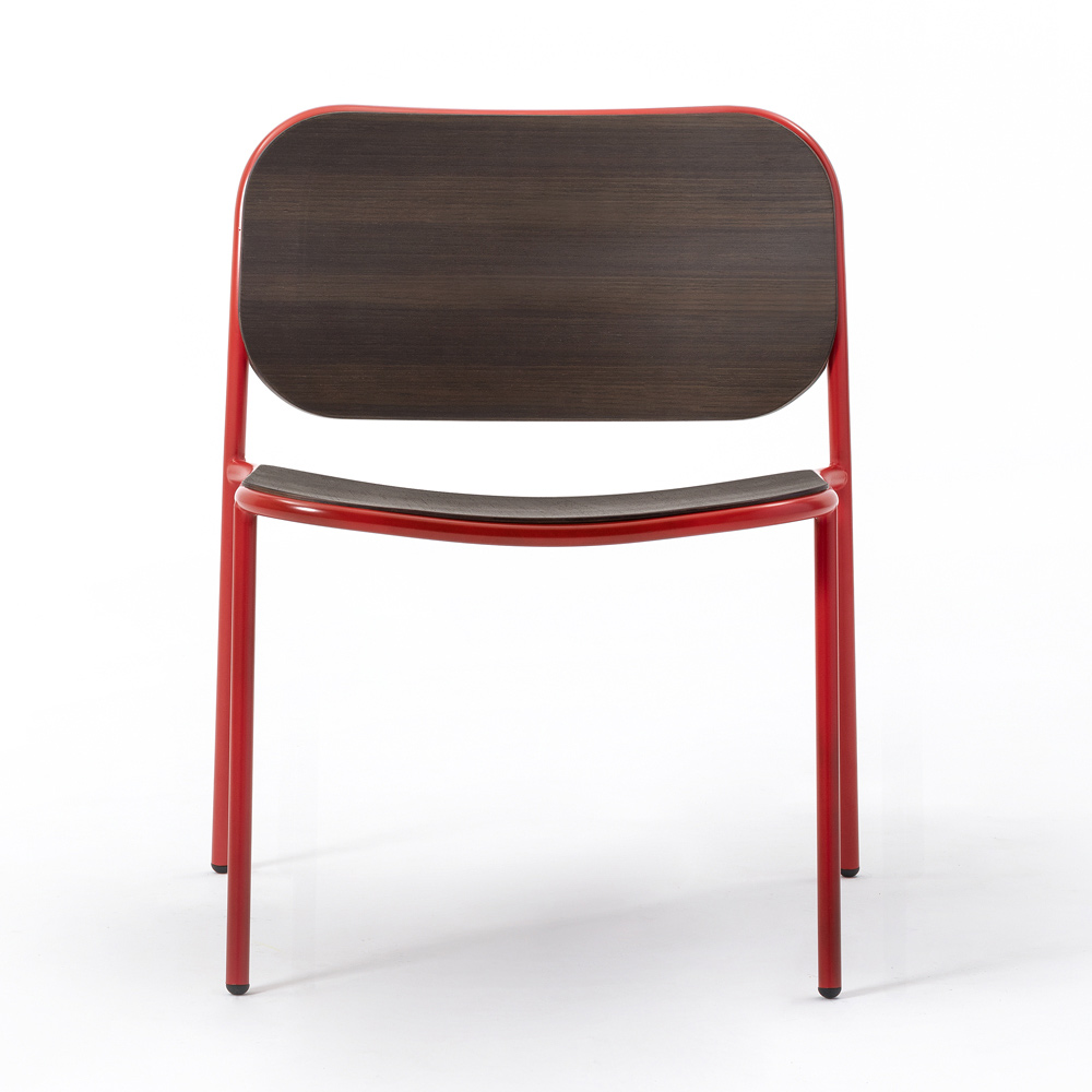 Armchair for living room with stackable structure in painted metal and seat and back in wood . A piece of furniture that comes from a 100% Made in Italy production process through the use of high quality raw materials that offer a solid and resistant result . Its simple aesthetic is punctuated by rounded and sinuous lines that ensure optimal comfort, inspired by the Nordic style typical of the 1950s. The result is a chair with a refined design characterized by the perfect combination of selected materials that makes it capable of completing the surrounding furnishings by creating a vintage atmosphere with a timeless taste.