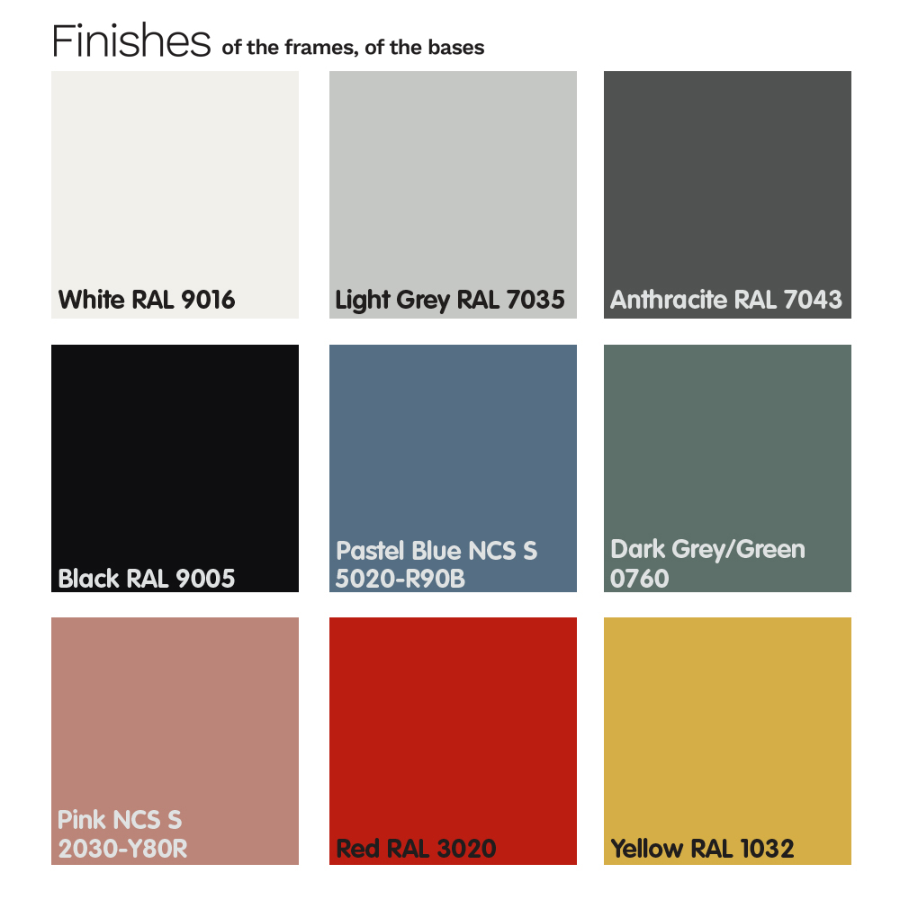 NB : the structure and the seat are available in a wide range of different colors and finishes. The armchair is also available in the version with armrests.