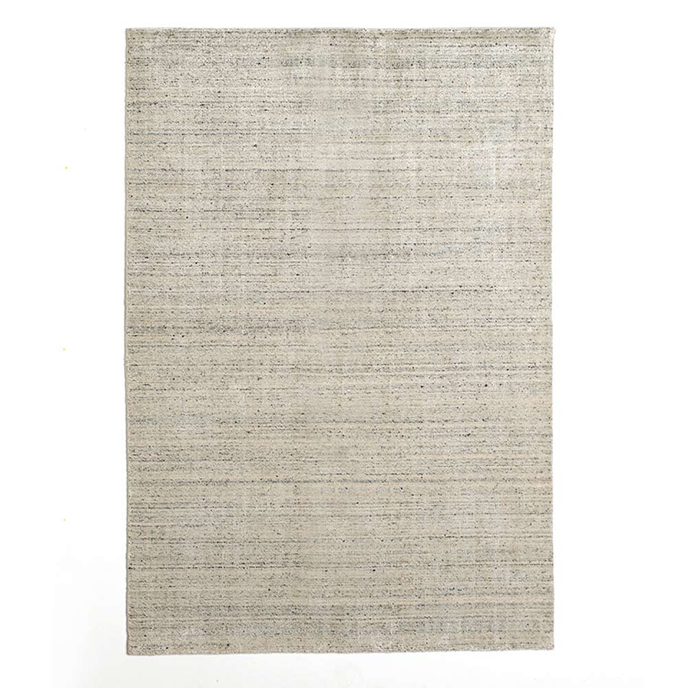 Modern living room carpet made on a manual loom in viscose, wool and cotton.