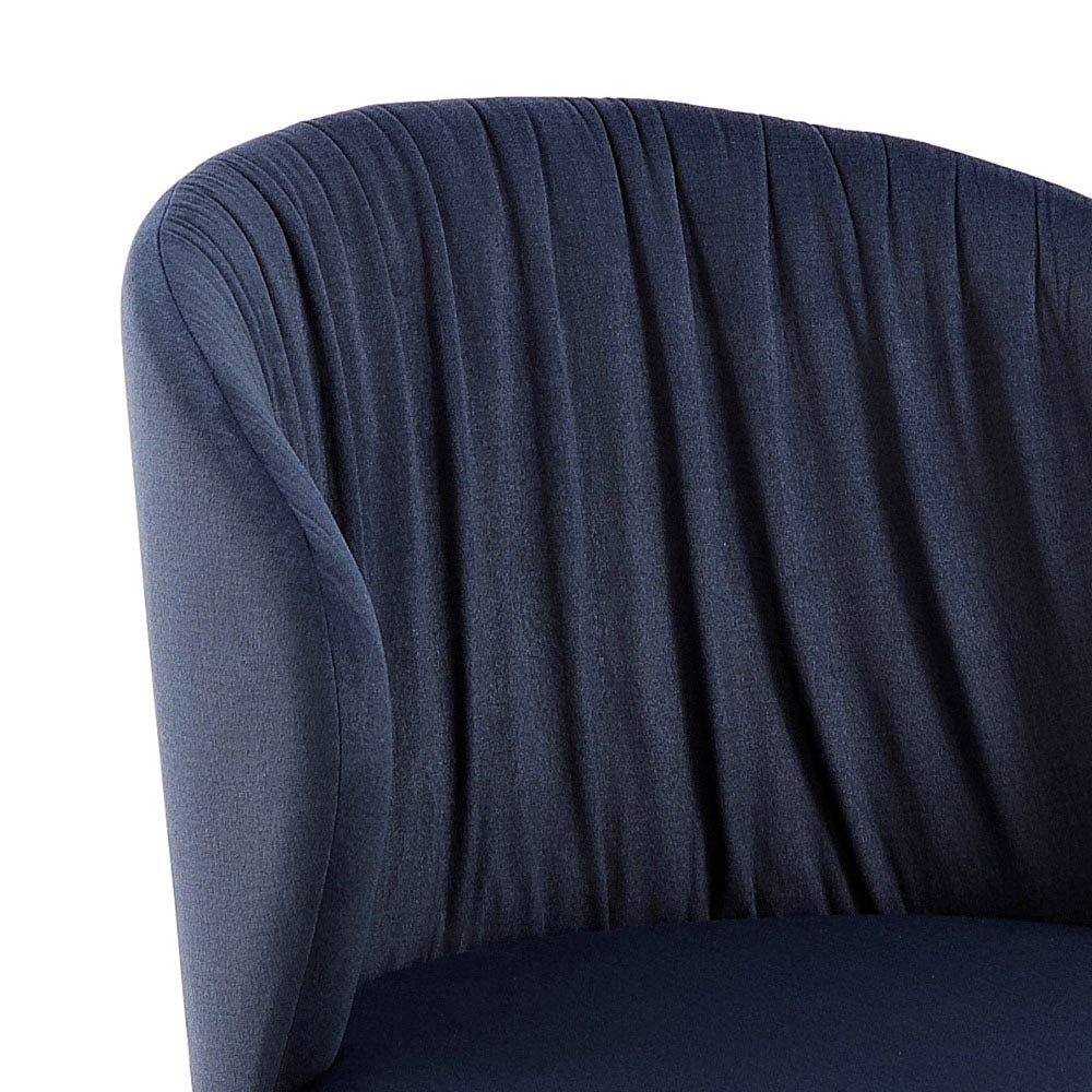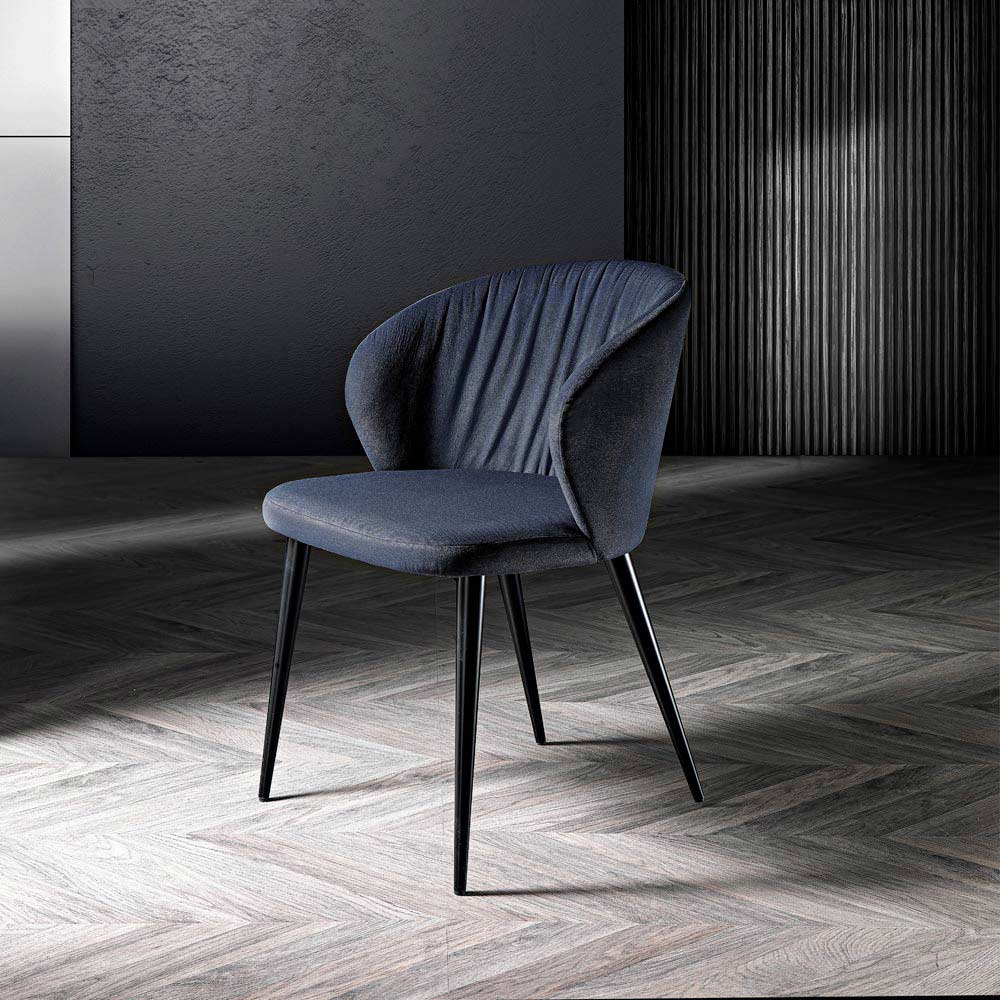 Modern design tub chair covered in colored fabric and conical metal legs, made in Italy.