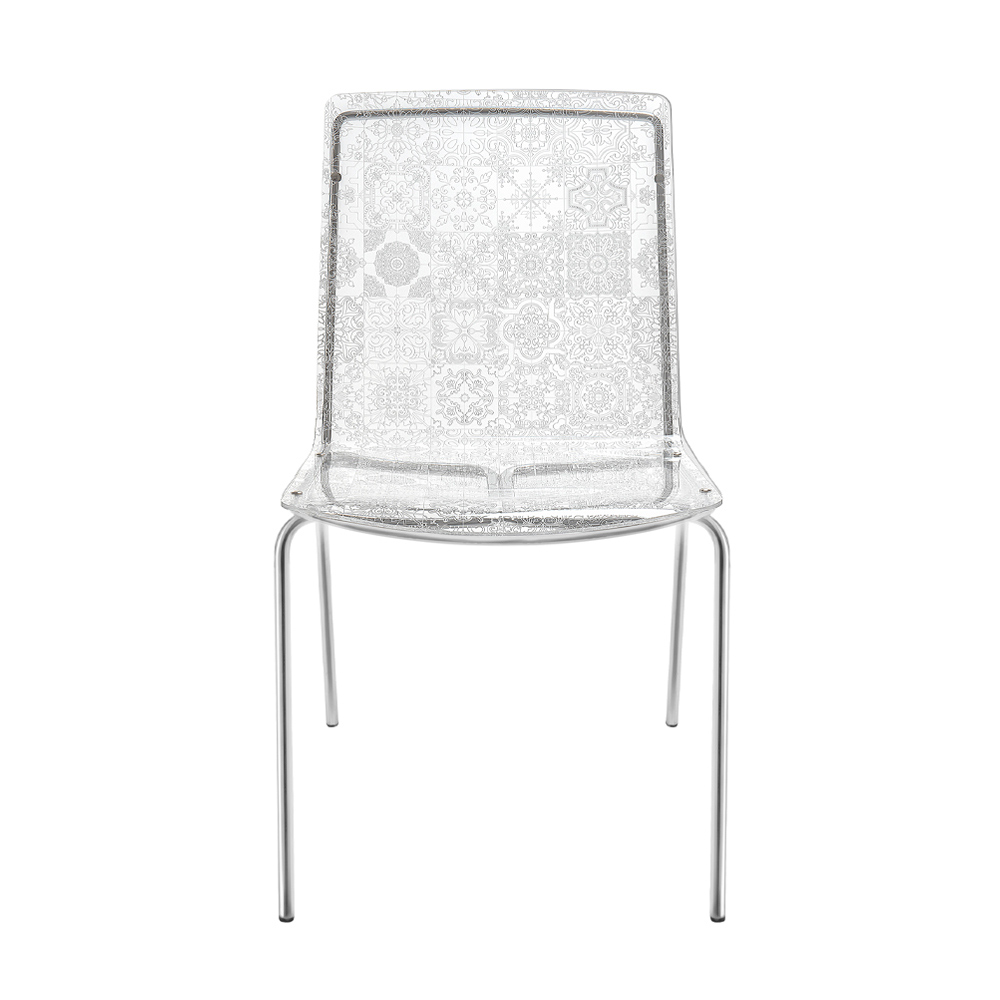 Living room chair made with plexiglass seat and back and silver chromed iron structure, entirely Made in Italy.