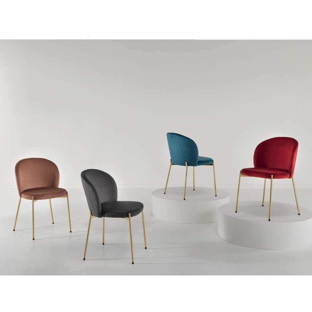 Living Room Chair in Upholstered Velvet and Golden Metal 4 Pieces - Assunta