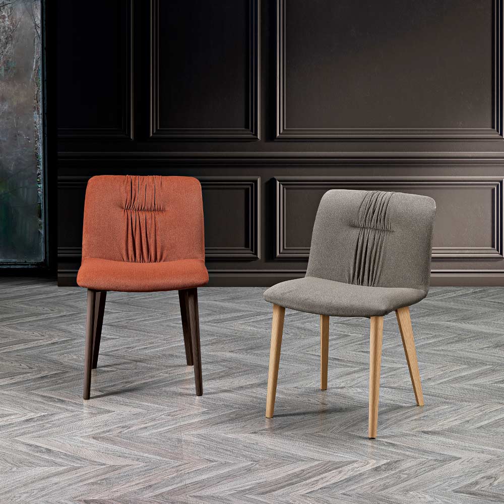 Transform your dining room into a more comfortable and elegant space with the modern monocoque chair with a seat covered in easy-to-clean crystal fabric and available in different color variants: