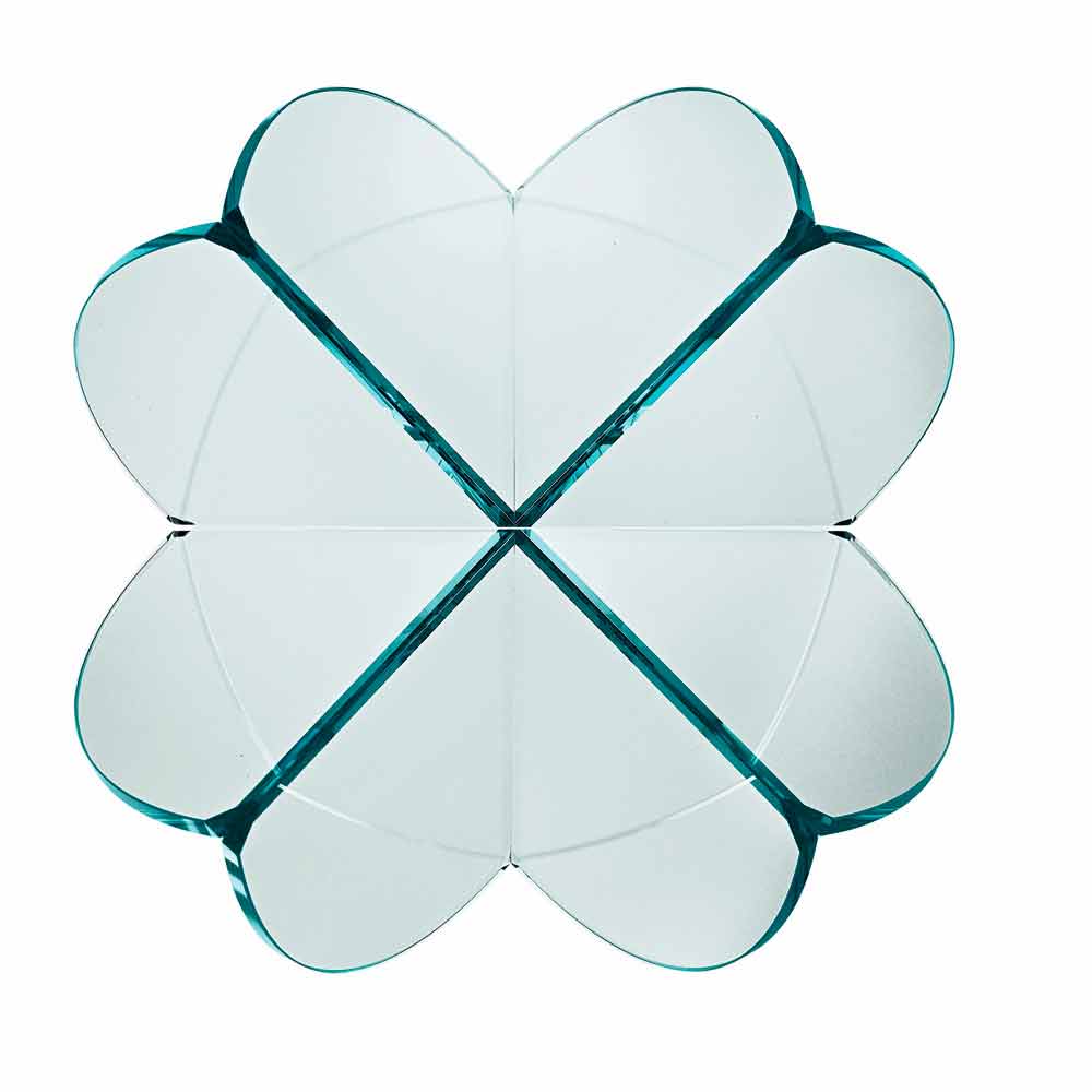 The final result is a piece of furniture reminiscent of a precious flower , created entirely in tempered glass with an acid-etched base.