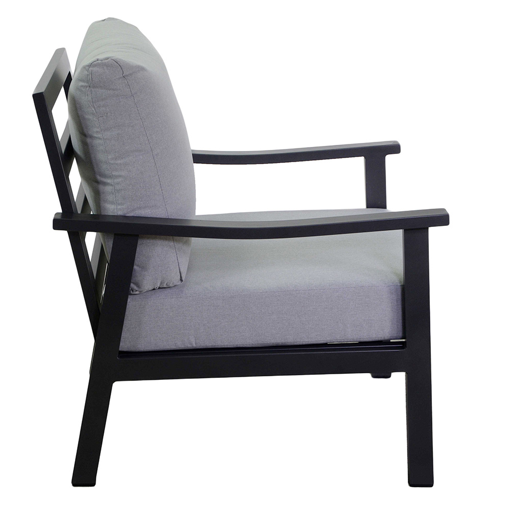 Discover timeless elegance and comfort with our anthracite aluminum lounge . Each piece is designed to offer absolute relaxation thanks to the ultra-soft cushions in light gray fabric that invite moments of pure well-being. The sturdy aluminum frame ensures durability and stability , ideal for daily outdoor use.