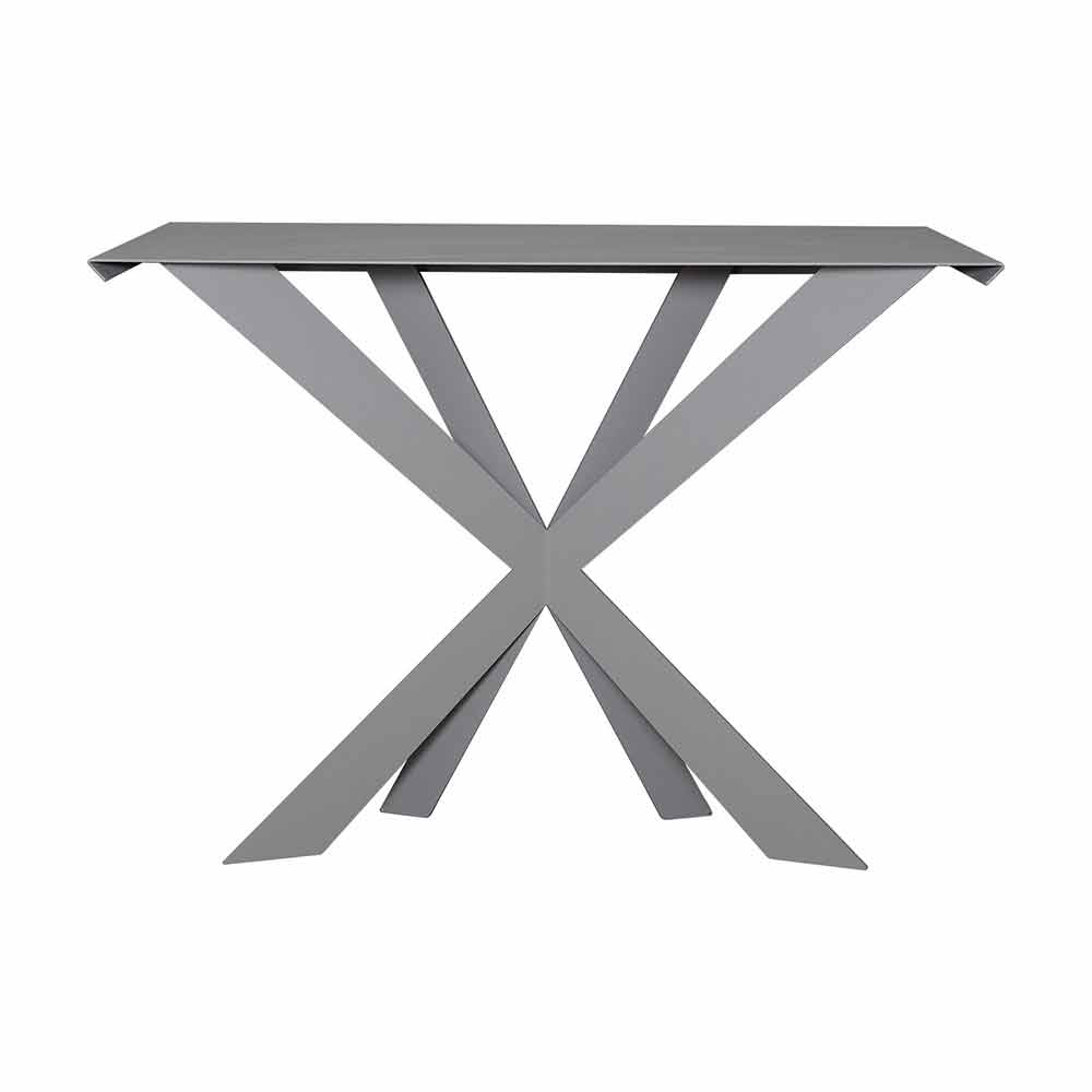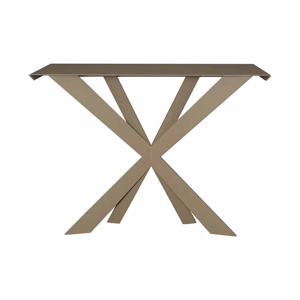 Zecchina is a stable living room or entryway console characterized by regular and asymmetrical legs that intersect and form an "X". Handcrafted in Italy in iron.