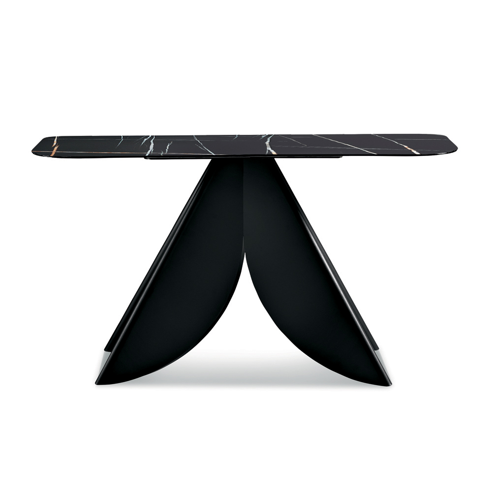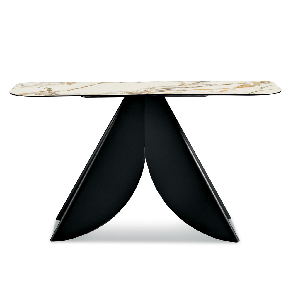 Made in Italy designer console table with marble-effect ceramic top and painted metal base