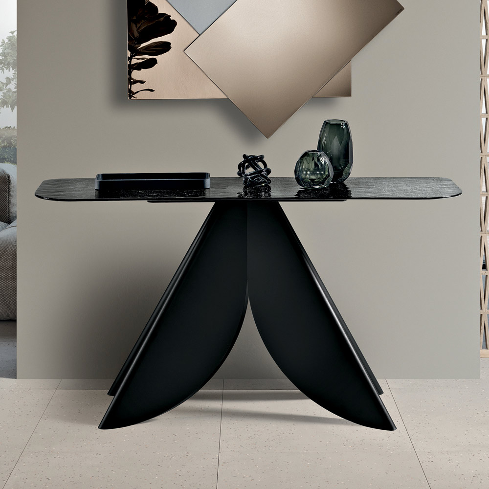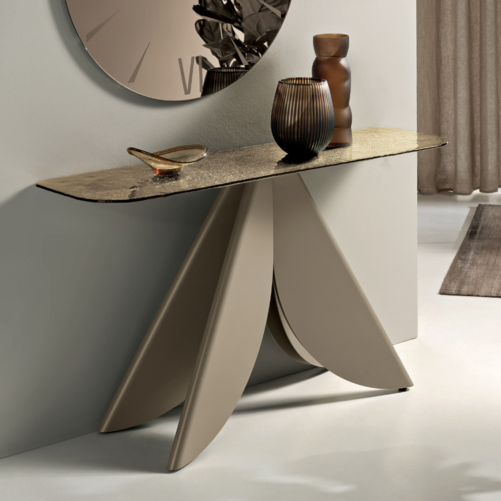 An elegant, Made in Italy designer console table , ideal for stylishly furnishing the entryway , living room , or passageways like hallways and passageways. Its contemporary design combines visual lightness and a strong aesthetic, transforming a functional element into a truly decorative complement.