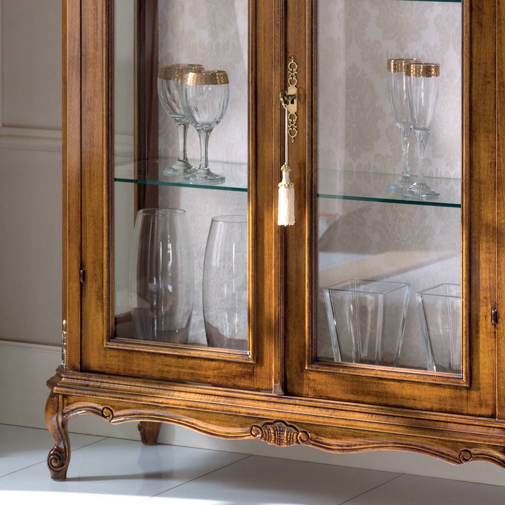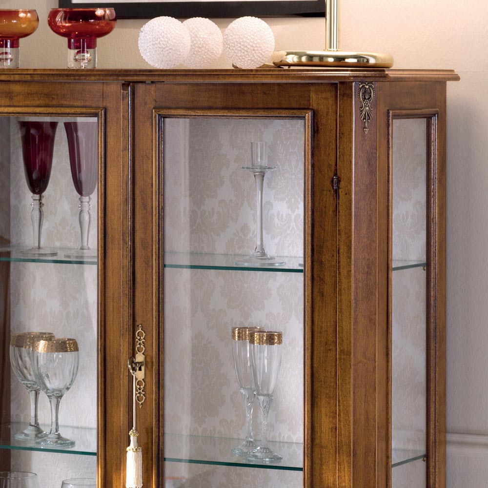 Classic style luxury living room display cabinet made of precious Bassano walnut finish wood , available in the version with 2 doors or 1 glass door. Elegant and timeless, this classic style display cabinet is ideal for creating impressive settings. Completely made in Italy by skilled master craftsmen , masters of art who finish each piece of furniture with wisdom and taste for elegance. The production is carried out using fine materials , first of all wood, and performing the work by hand with the utmost care and professionalism that distinguishes Made in Italy products.