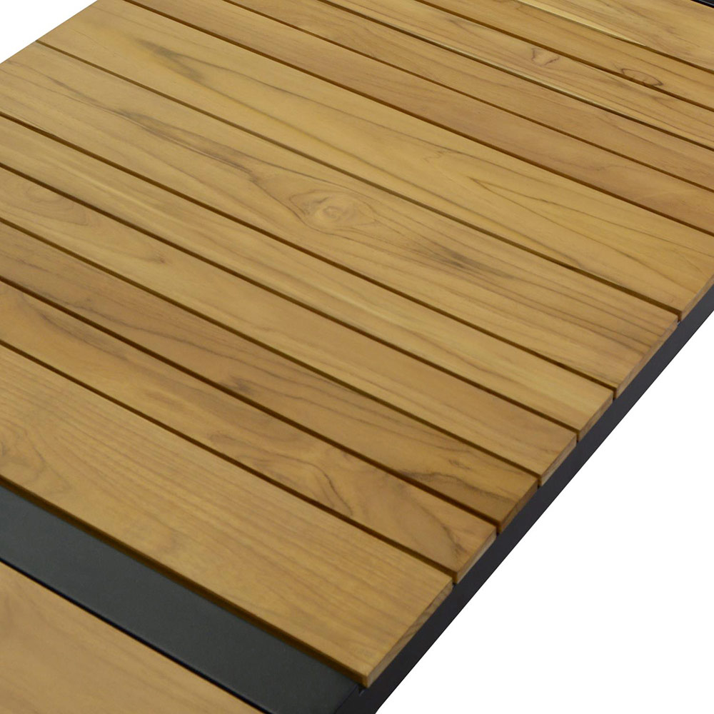 1 coffee table: frame in rustproof aluminium powder coated in anthracite and top in TEAK wood from Brazil.