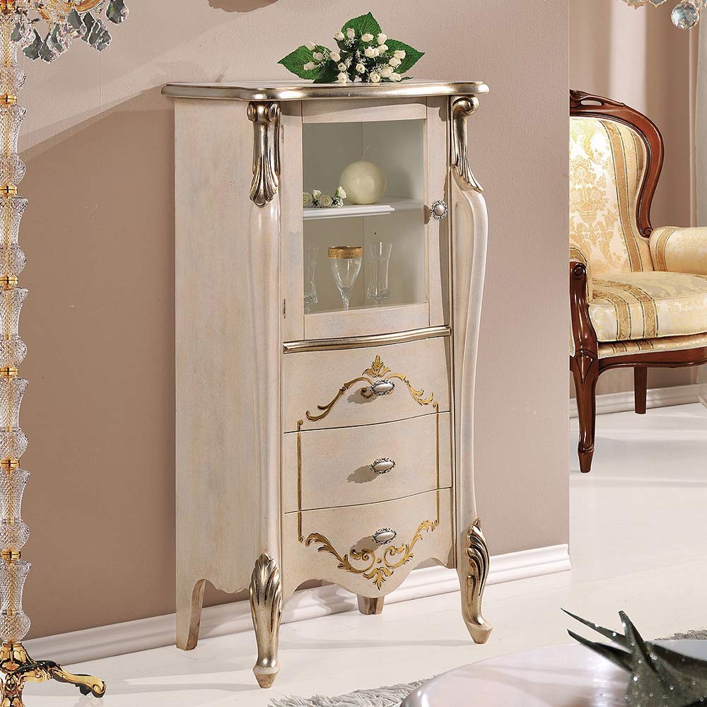 glass door and 3 practical drawers designed to furnish your living room with timeless elegance. Available in two variants: