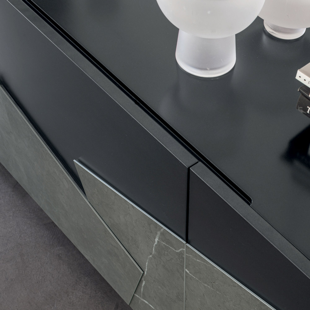 3-door MDF sideboard with matt ceramic inserts made in Italy.