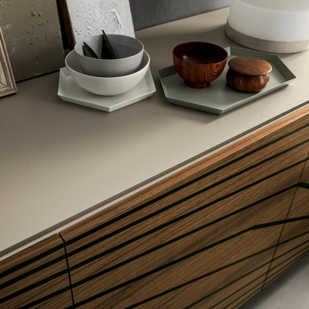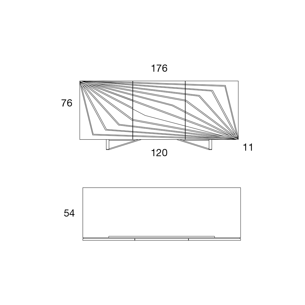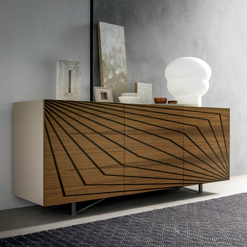3-door lacquered MDF sideboard with silk-screened inlays, design made in Italy.