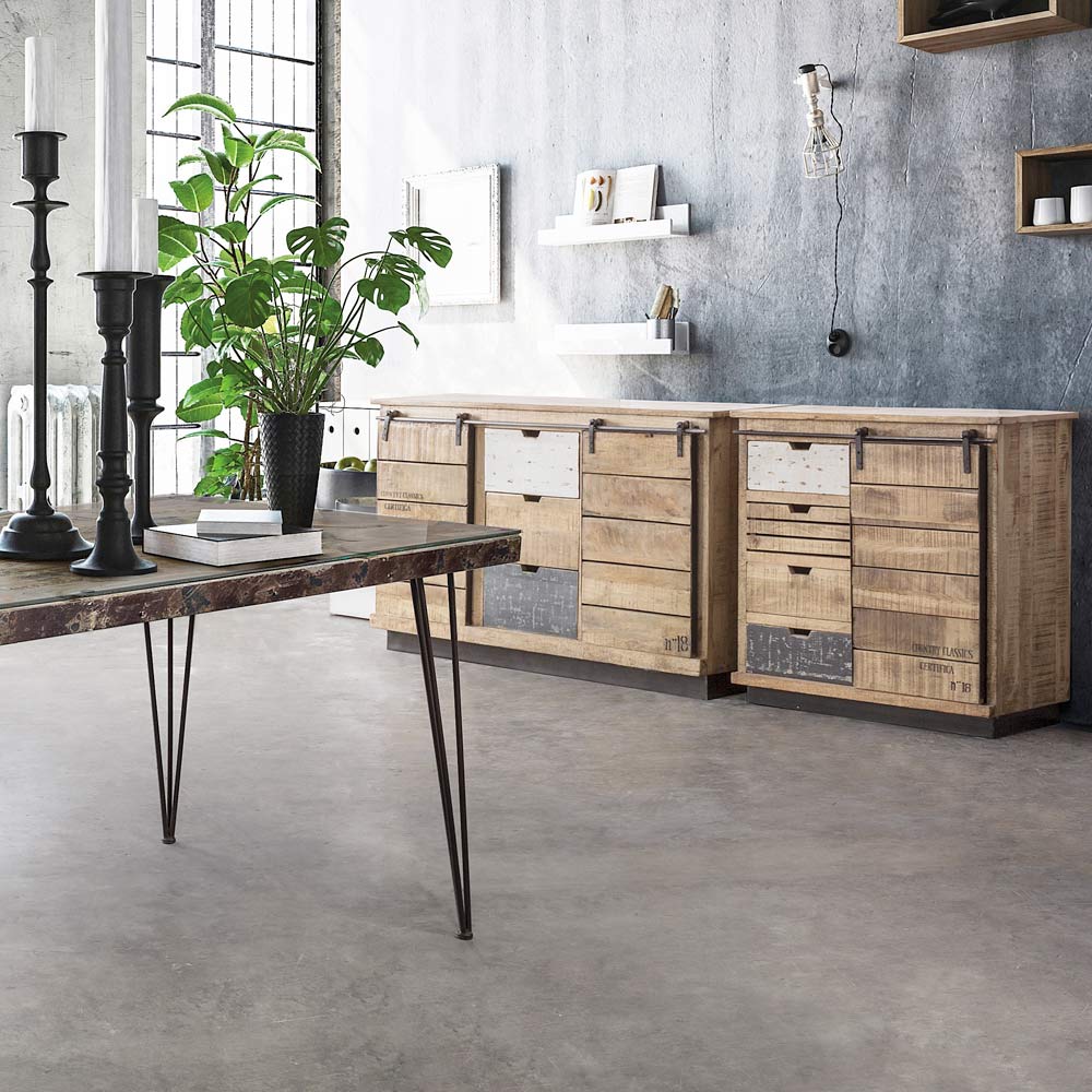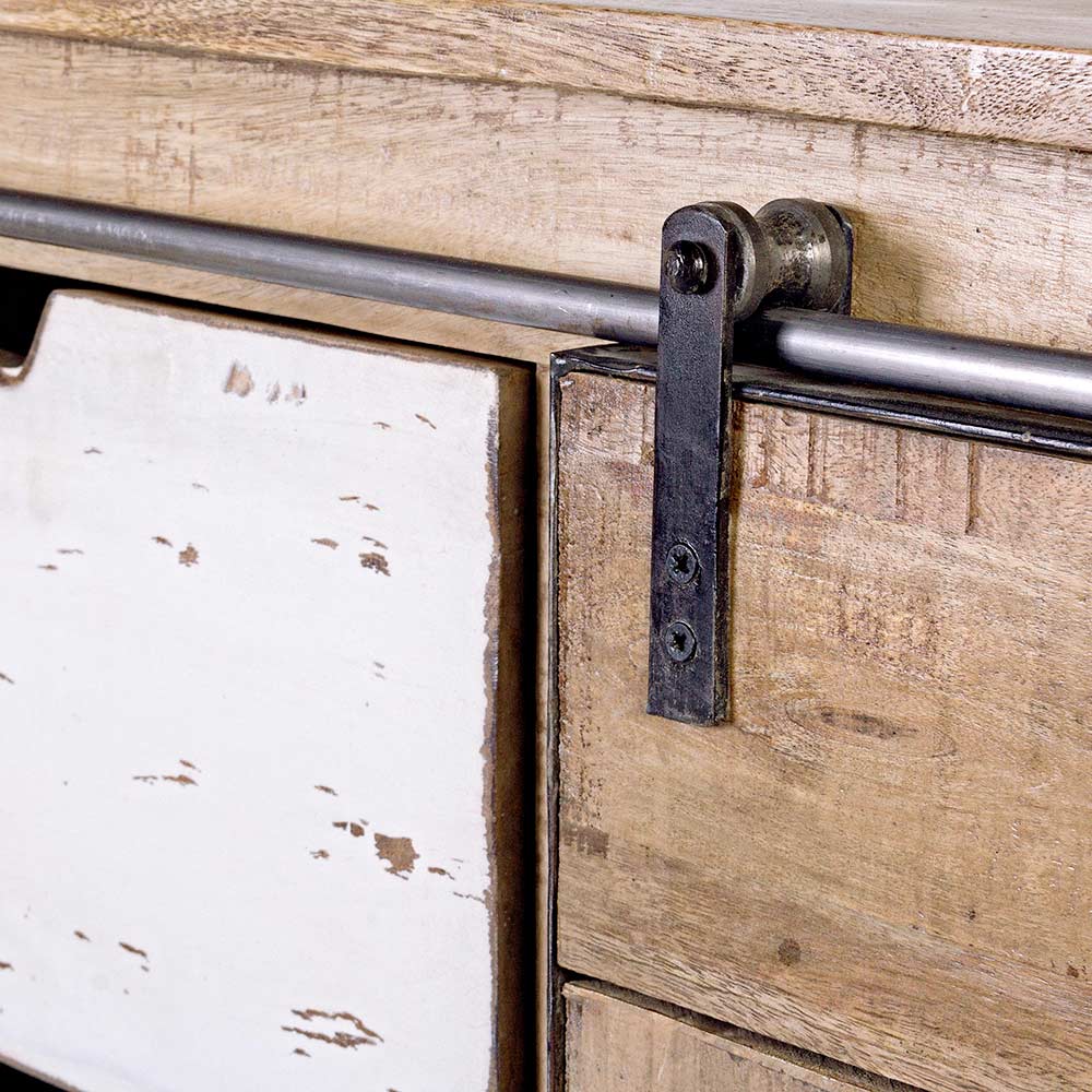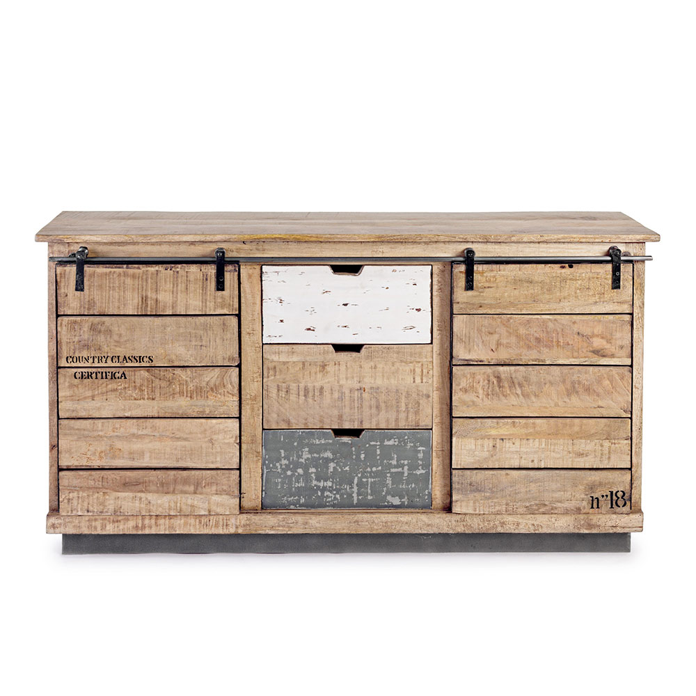 Sideboard in mango wood, steel with 2 doors and 3 drawers.