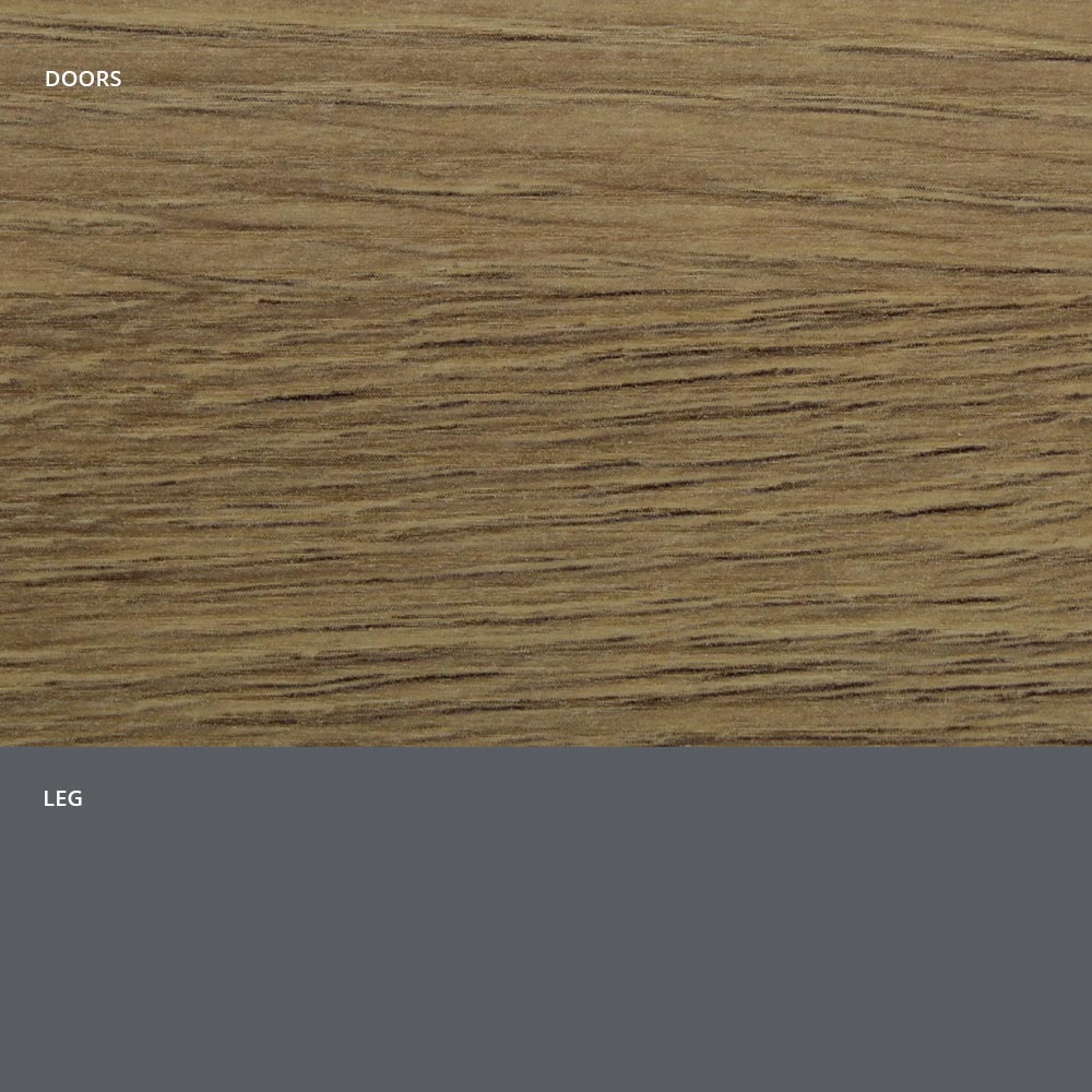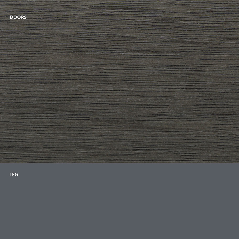 Modern sideboard with plinth structure and base   in lacquered wood with matt slate gray finish, 2 or 3 doors with aluminum profile and fronts in wood-effect HPL laminate equipped with push&pull opening system and internal shelves in transparent tempered glass (thickness 6 mm, maximum load capacity 20 kg). Made through 100% Made in Italy workmanship with high quality materials , this furnishing accessory represents the perfect combination of functionality and design for a result with a modern personality and a strong scenographic impact , ideal for those who love a refined and elegant furnishing style. avant-garde . To underline its value even more is the hpl top, a high pressure laminate extremely resistant to chemical agents, abrasions and scratches which allows us to offer a solid support surface with excellent durability over time .