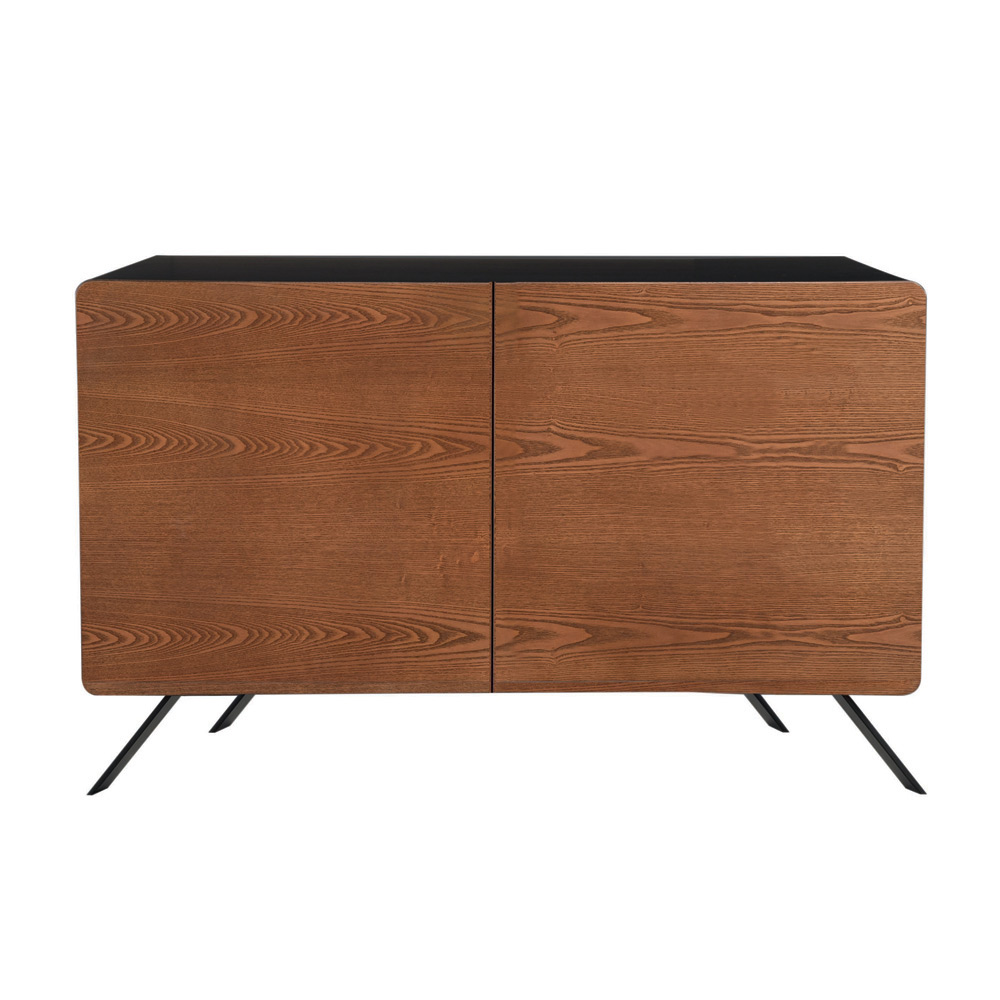 The living room sideboard with a 4-foot base in coal-finish iron, coal-finish mdf structure with solid wood back complete with stained ash blockboard doors is made in Italy by quality workmanship and materials combined with the refined taste of a contemporary design. This sideboard is available in two different sizes with two and three internal shelves in MDF .