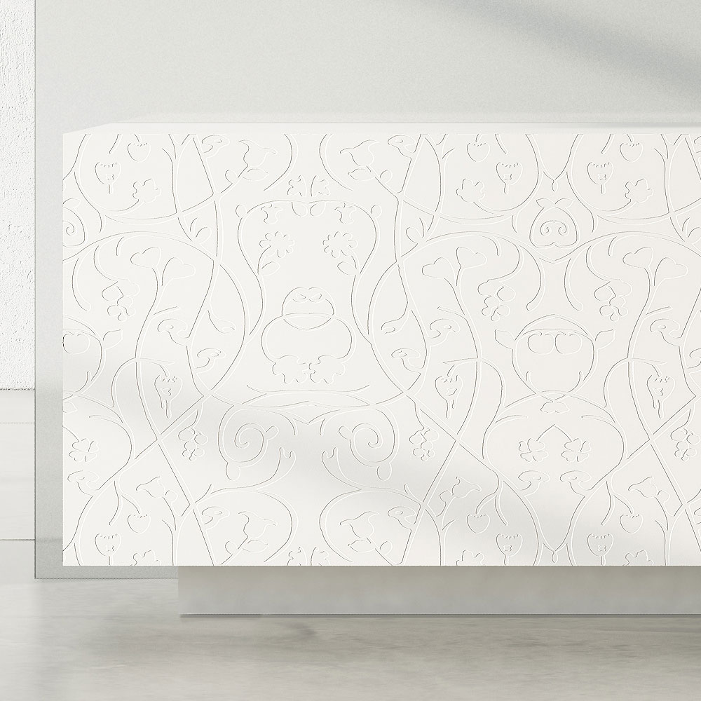 Living room sideboard in White Lacquered Mdf with Bas-relief Made in Italy - Acqua