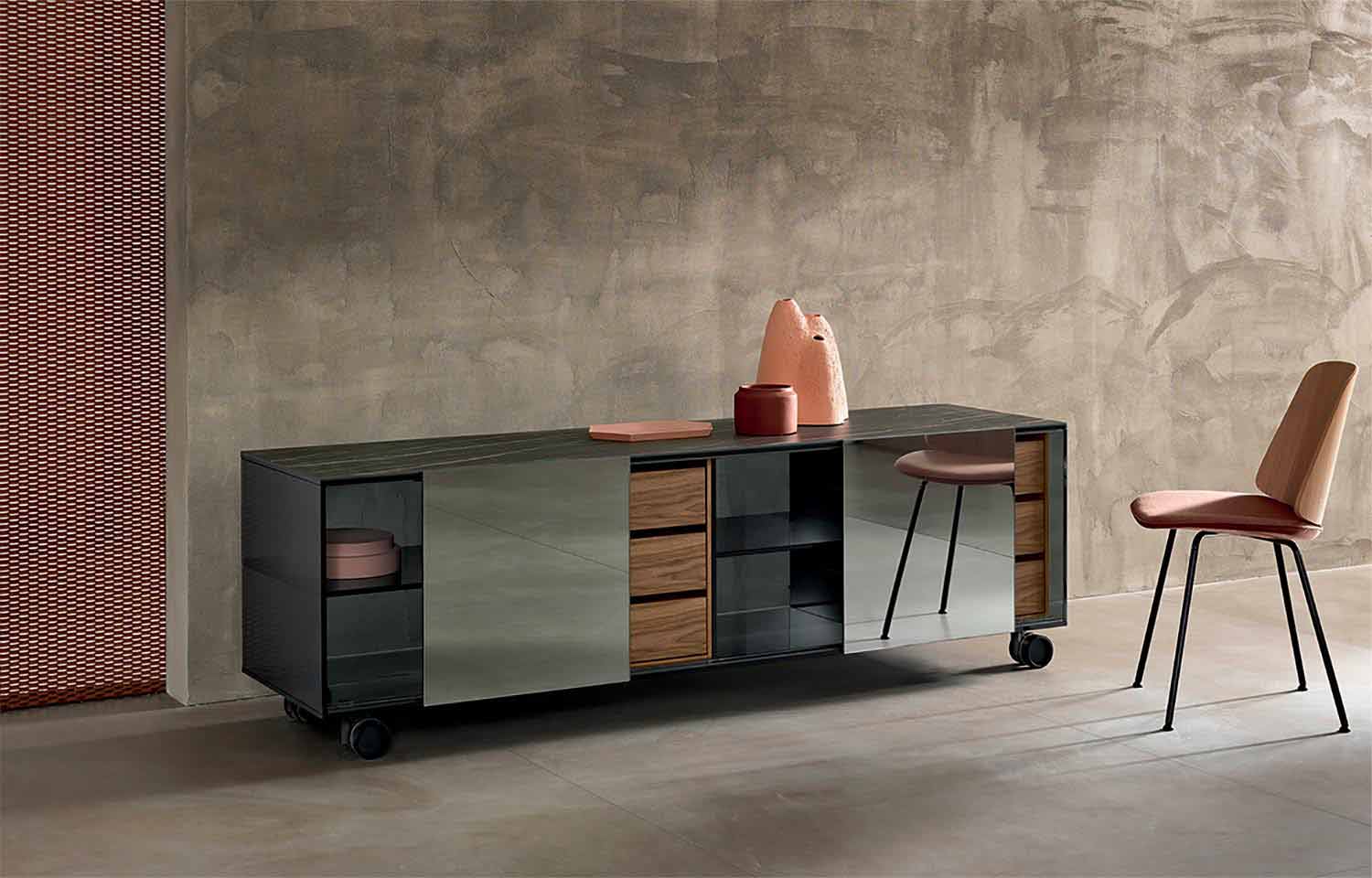 The living room sideboard Scocca is realized by hand in Italy with high-quality materials.
