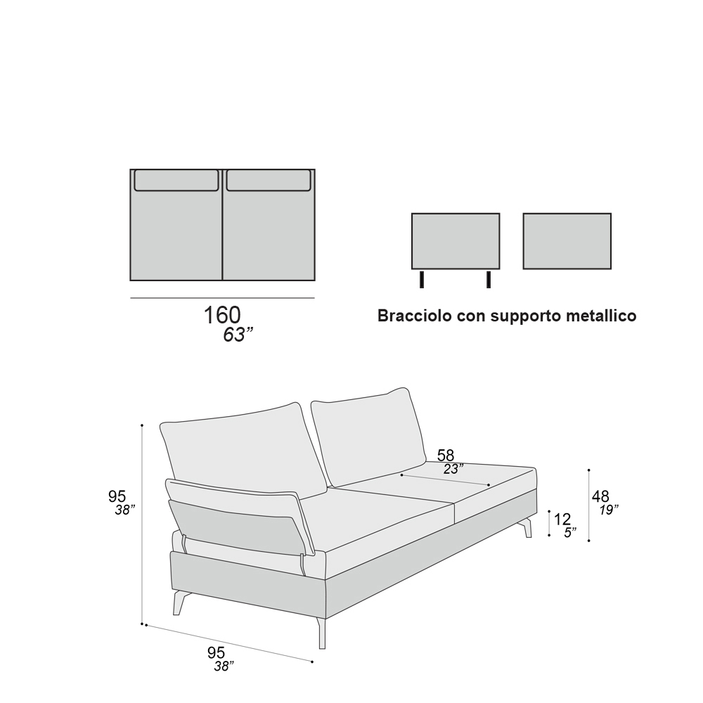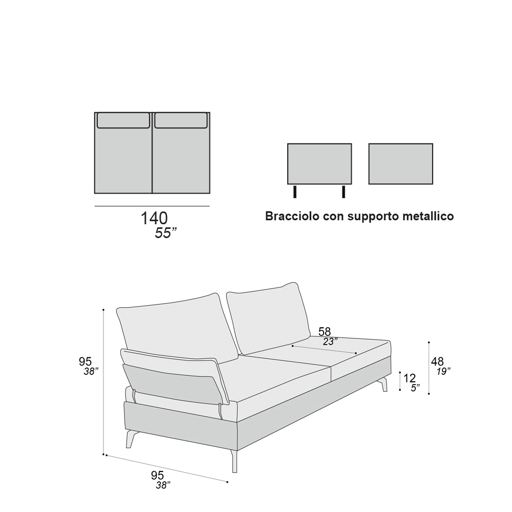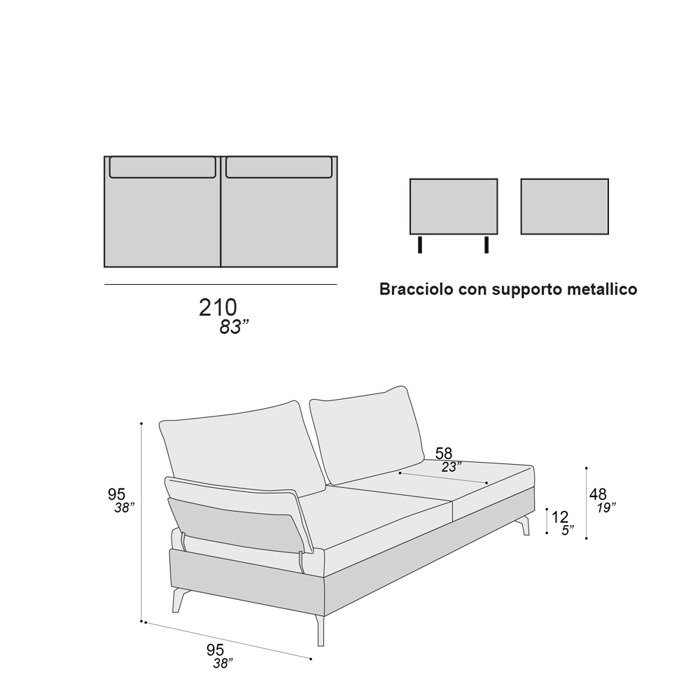 Living Room Sofa with 2 Backrests and 2 Movable Armrests - Precious