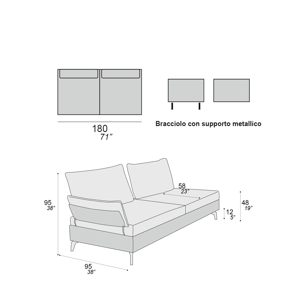 The sofa was designed to encourage good conversations with friends and family. Its unmistakable linearity and versatility, together with the colorful or more rigorous coverings, make it suitable for any occasion, almost like a dress that goes from formal to informal simply by varying the chosen composition.