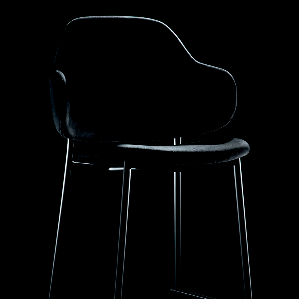 black lacquered steel. The soft and enveloping lines of the seat and backrest are characterized by reassuring shapes. Ideal in the dining room, as well as in the kitchen, it will personalize the environments with design and functionality. It embodies style, quality, design and elegance. Thanks to its sinuous, simple and stylized lines it is suitable for any type of furniture.