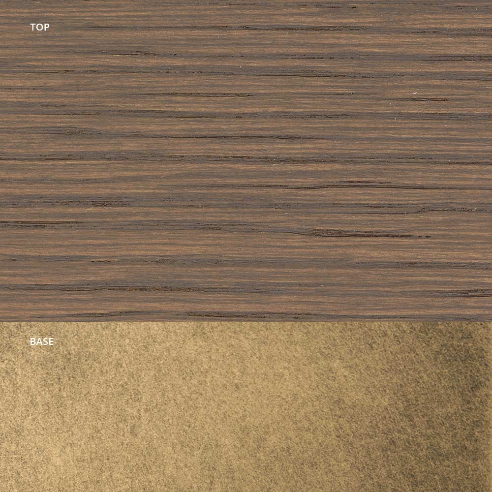 Table in knotted oak and top and base enriched with metal parts Made in Italy.