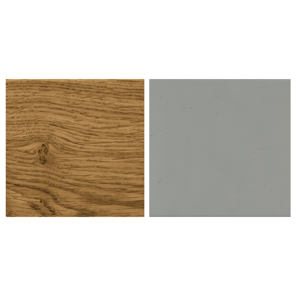 shaped top in solid knotted oak blockboard with country knotted oak finish and slate color undertop. The original base in curved oak plywood is composed of two curved and sinuous elements, which support the important top, recreating a perfect balance of shapes.