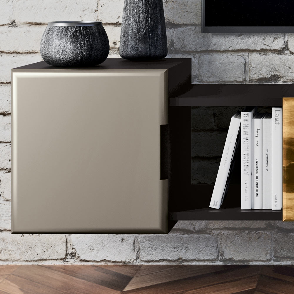 - 2 wall shelves, CARBONE finish, lacquered MDF