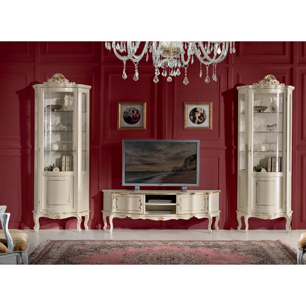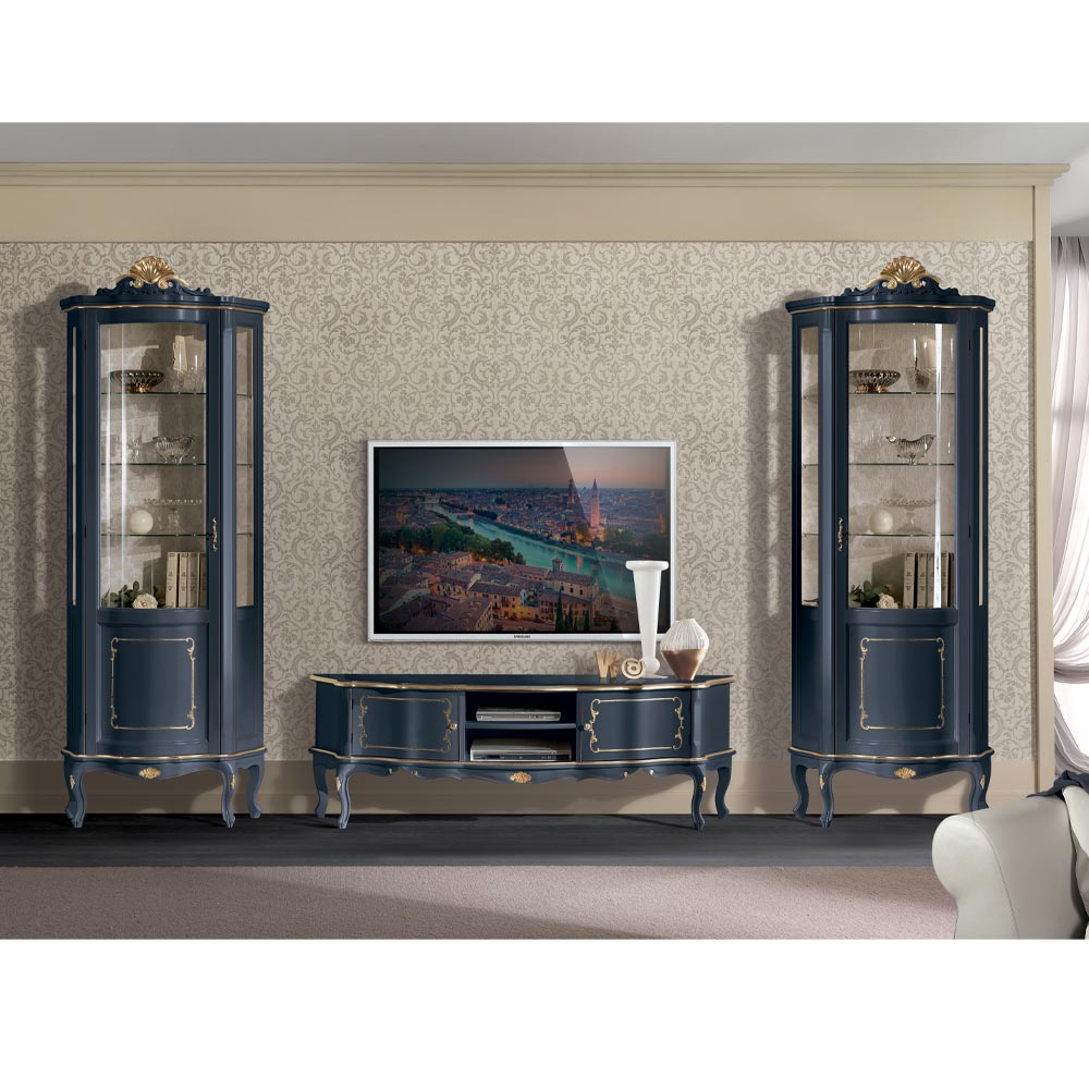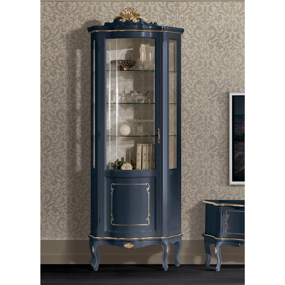 Living room display cabinet made of air force blue or white and gold finish wood with door, perfect for decorating any living area with
