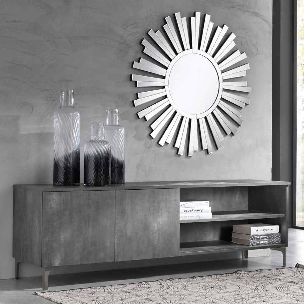 Living room TV cabinet with two doors, modern design in melamine wood made in Italy.