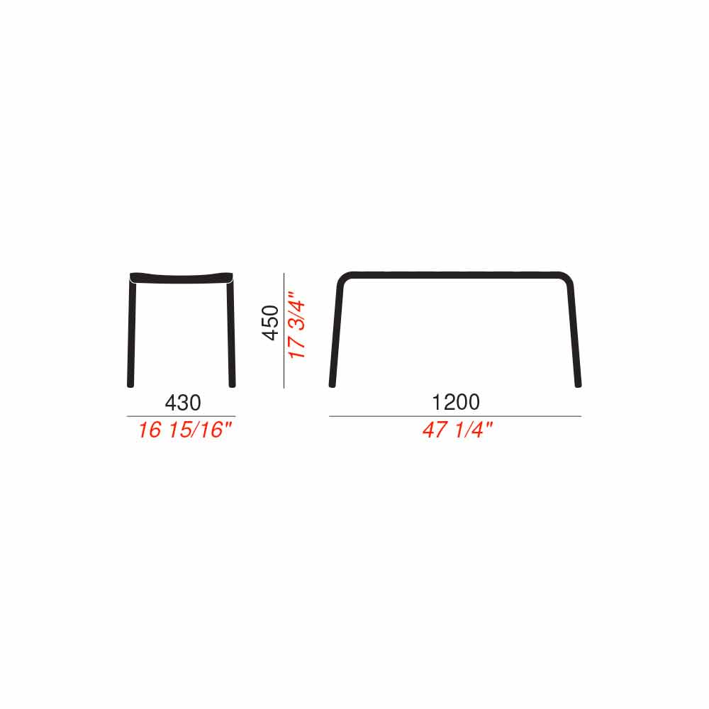 Low outdoor bench in painted aluminum Made in Italy.