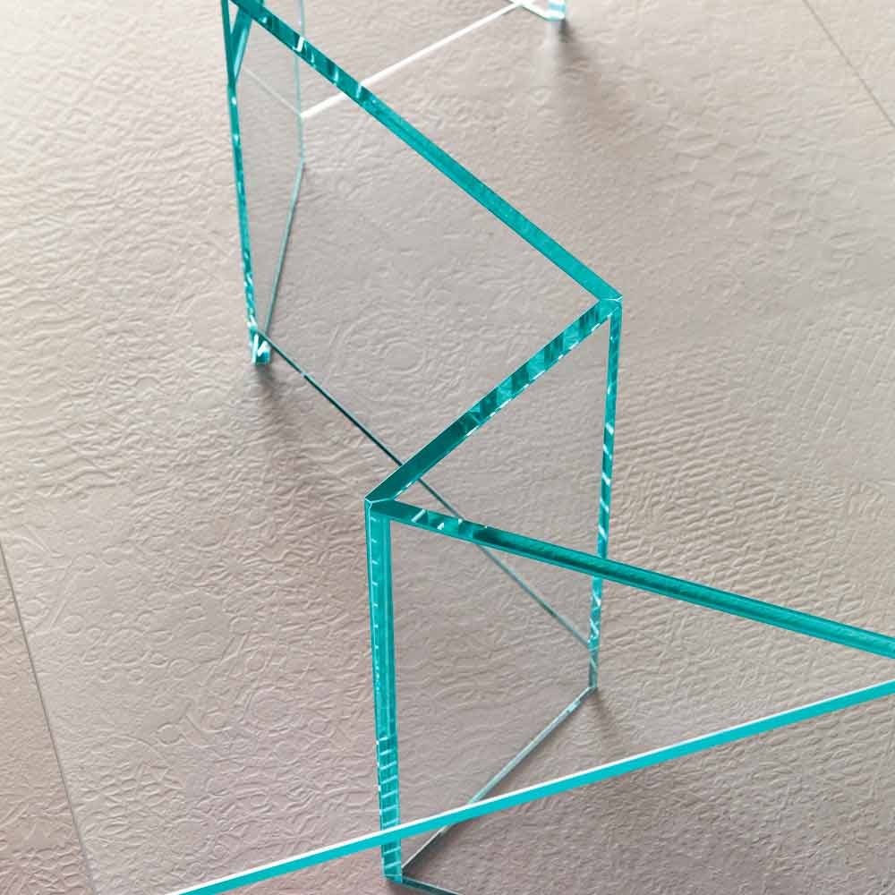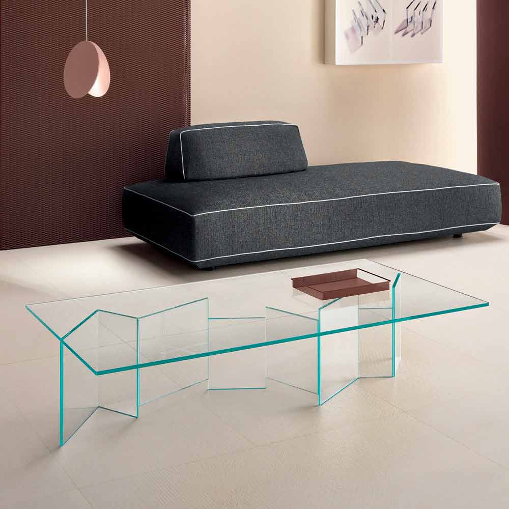 Low table in extra-clear glass of 2 sizes, high quality made in Italy.