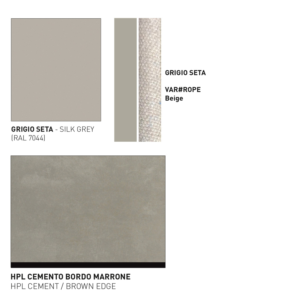 • silk gray leg, beige VAR # ROPE weave, concrete hpl top;