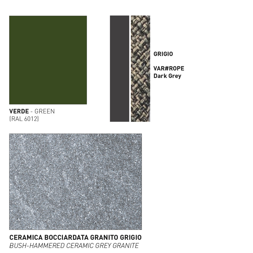 • green leg, VAR # ROPE dark gray weave, gray granite bush-hammered ceramic top;