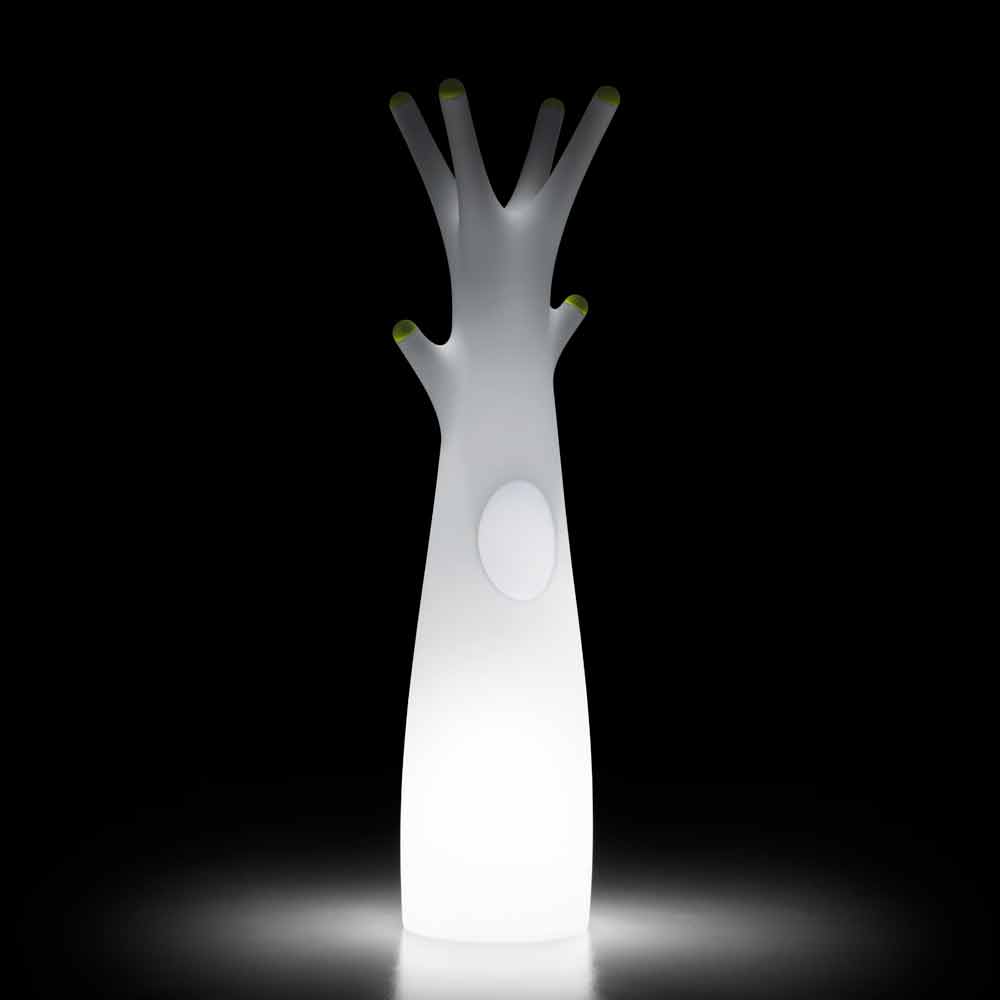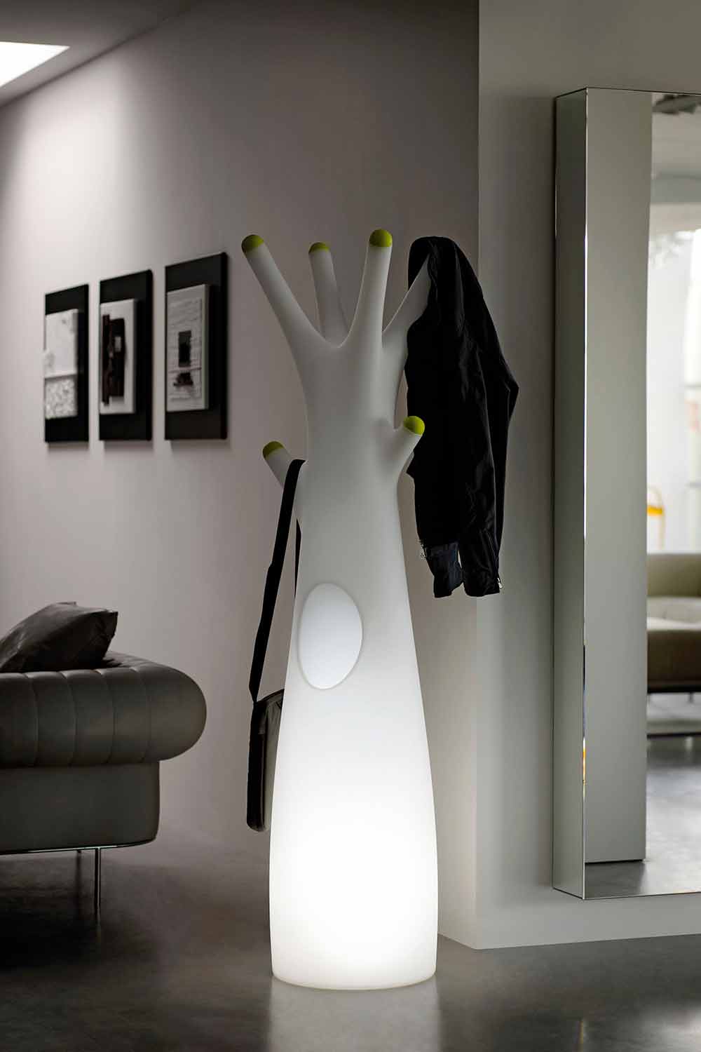 Design floor polyethylene coat hanger with LED light, made in Italy.