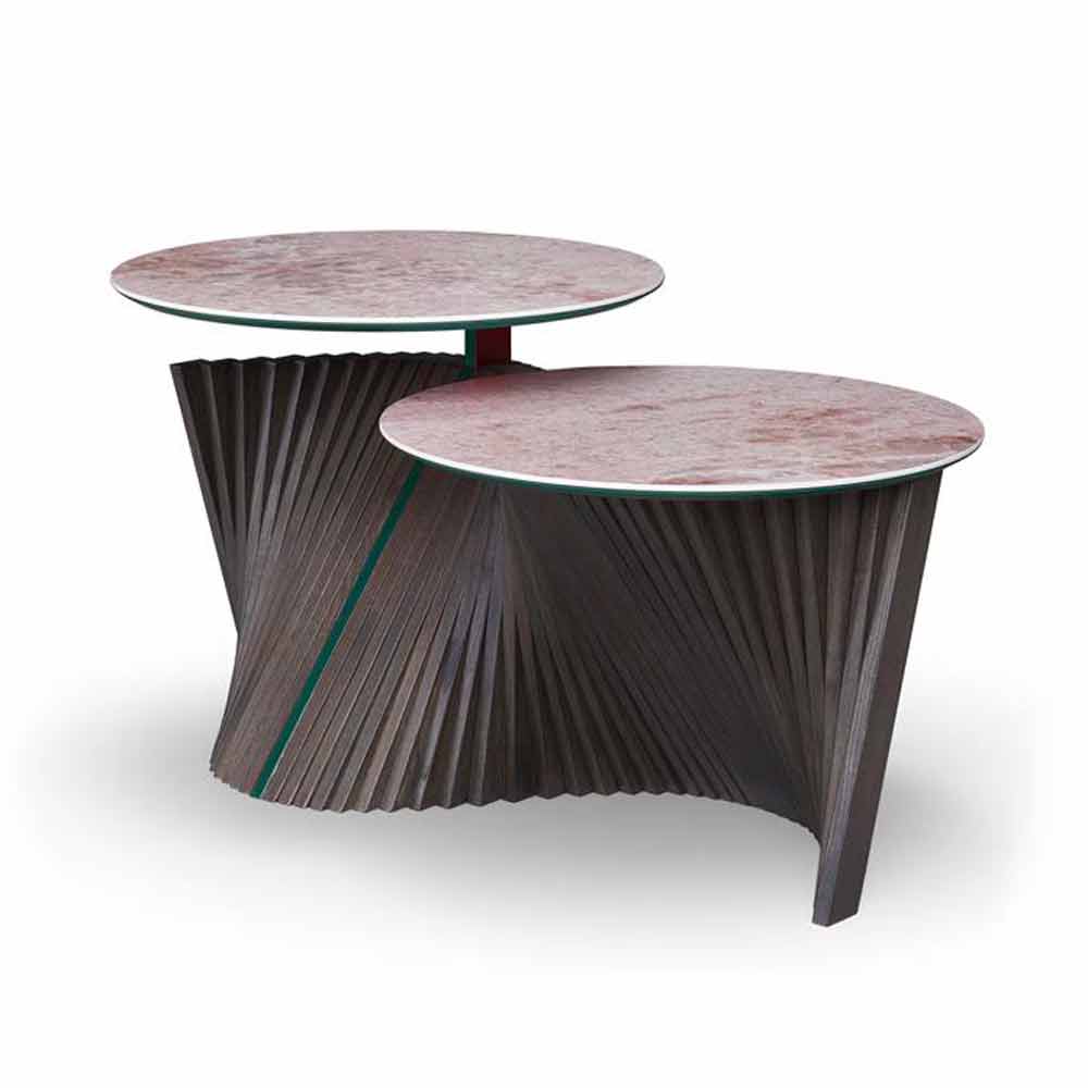 Luxury Coffee Table with 2 Round Tops in Gres Made in Italy - Stockholm