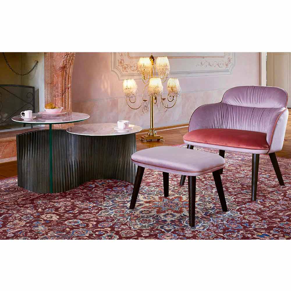 Design coffee table in polished marble stoneware and ash wood, a fine Made in Italy product.