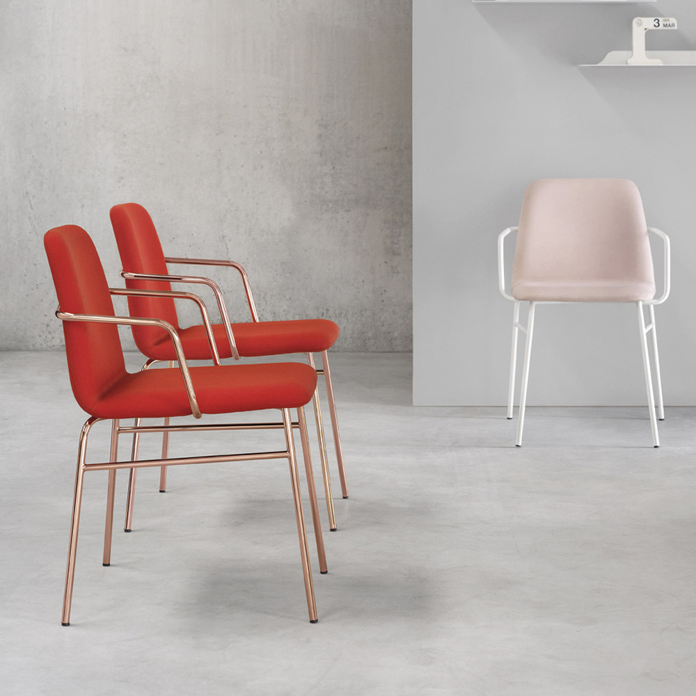 Precious metal armchair with armrests and padded shell Made in Italy.