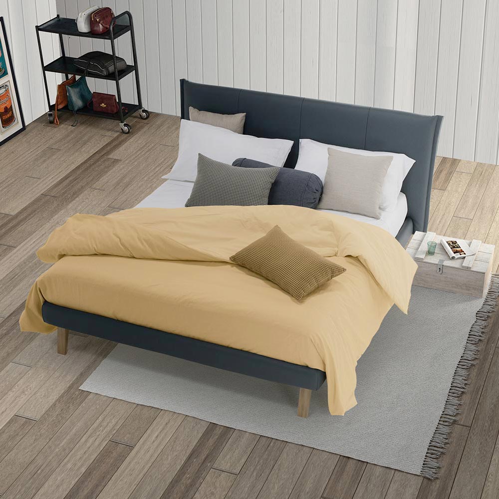 High quality double bed without padded container, handcrafted in Italy in fabric or eco-leather.