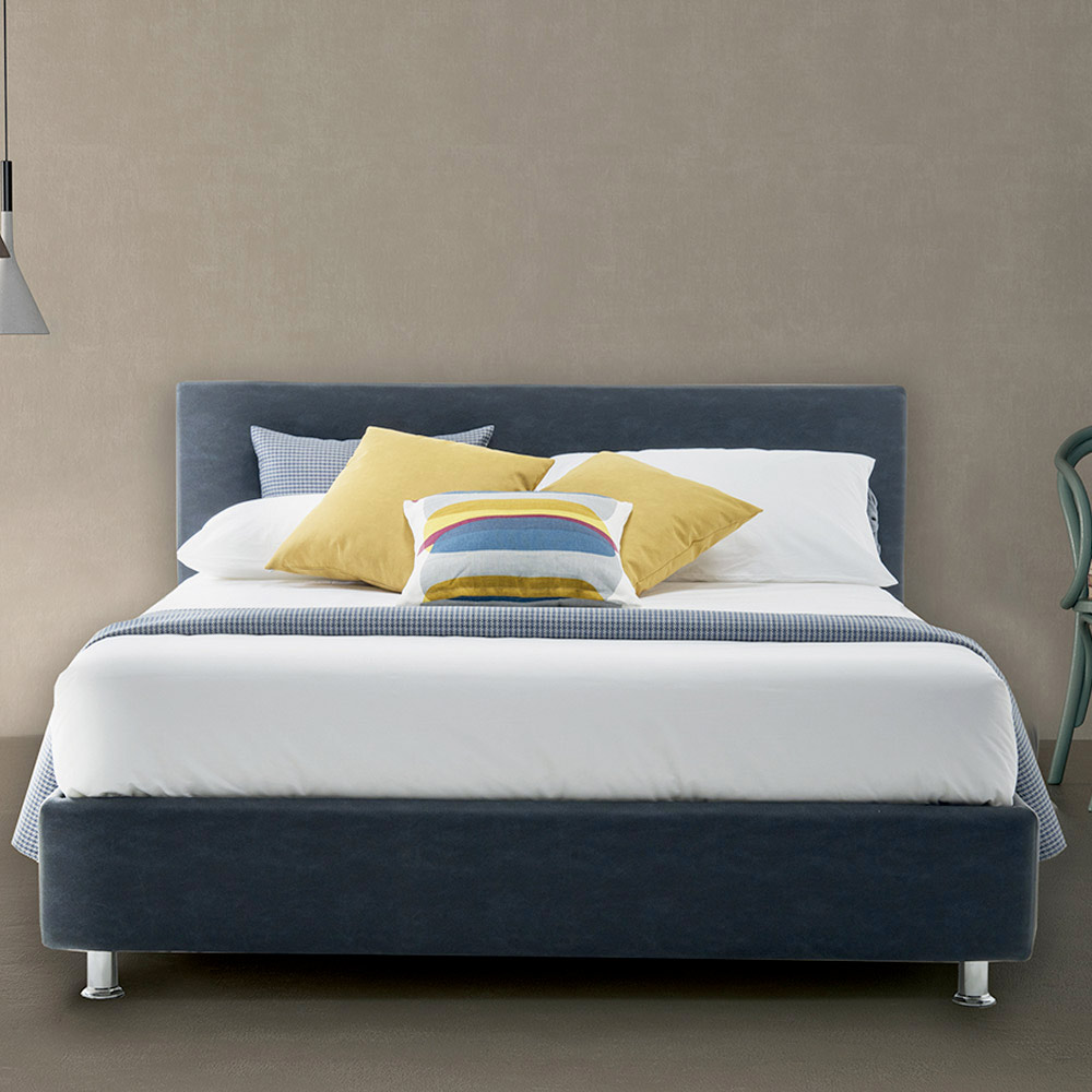 Bed with high quality double container in fabric or eco-leather, handcrafted in Italy.