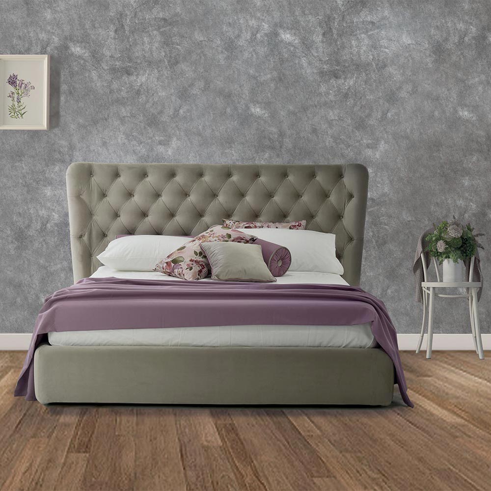 ample possibilities for customization, both as regards the measures and the type of coating. In fact, a vast collection of fabrics, leathers and eco-leathers to choose from is available. The bed can also be purchased in the version without container. For advice and / or personalized quotes,