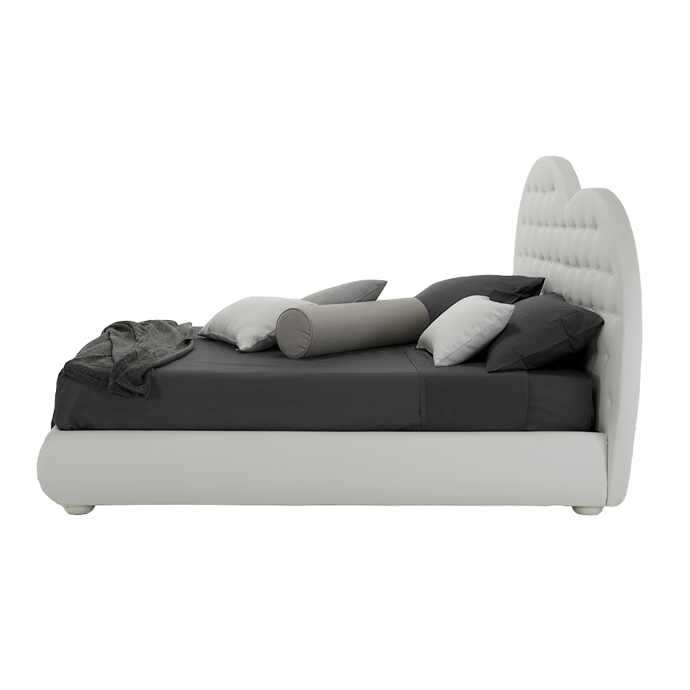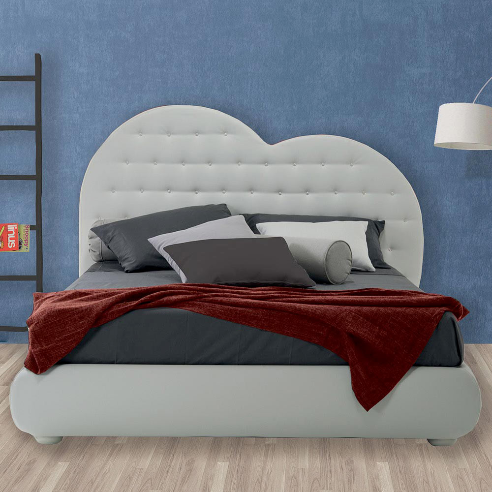 ample possibilities for customization, both as regards the measures and the type of coating. In fact, a vast collection of fabrics, leathers and eco-leathers to choose from is available. The bed can also be purchased in the version without container and with smooth headboard. For advice and / or personalized quotes,