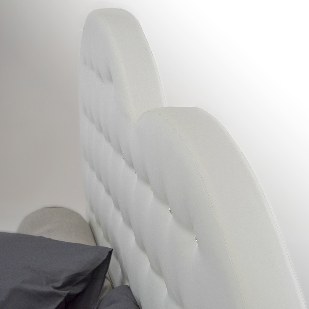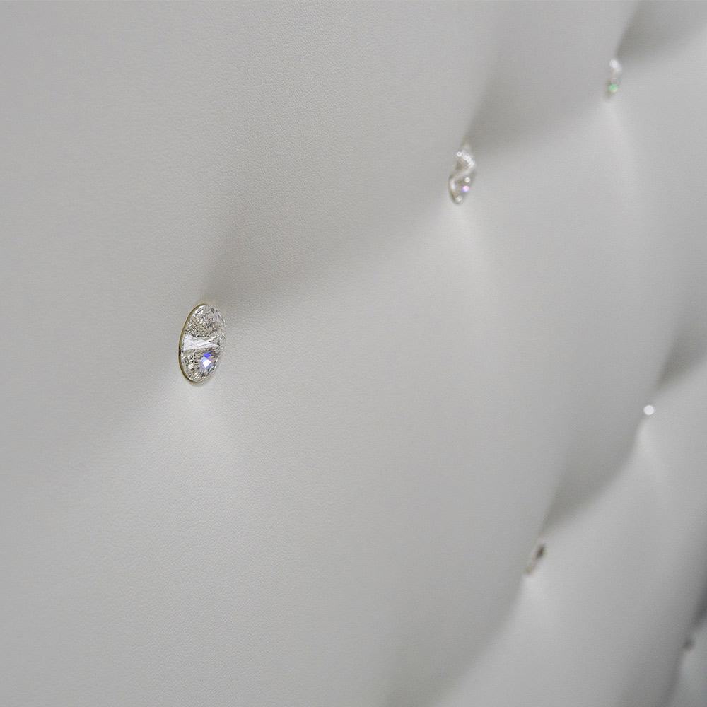 High quality double bed with chest of drawers and headboard upholstered with Swarovki; handcrafted in Italy in fabric or eco-leather.