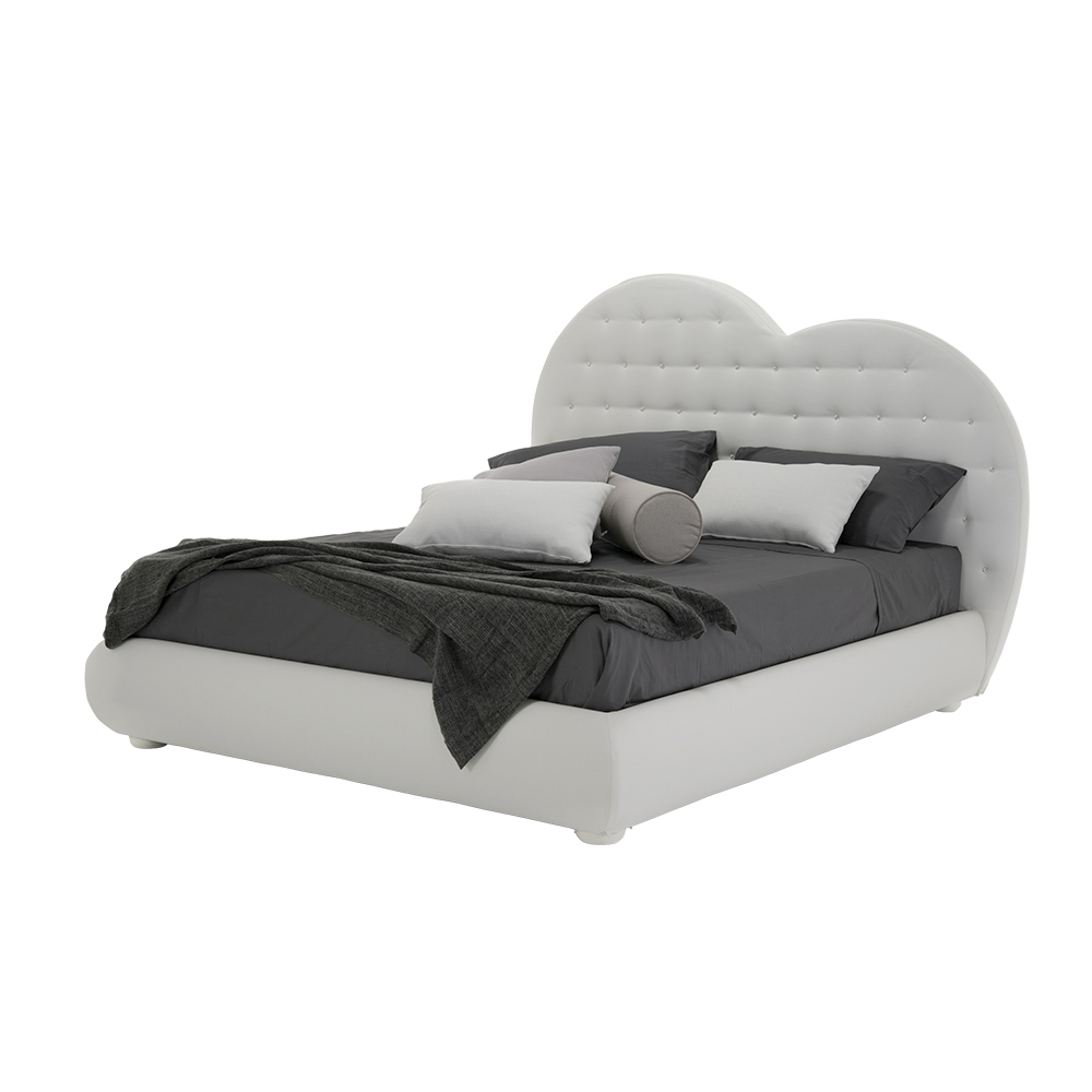 The Cuoricino bed is distinguished from others for its strong aesthetic impact due to the heart-shaped