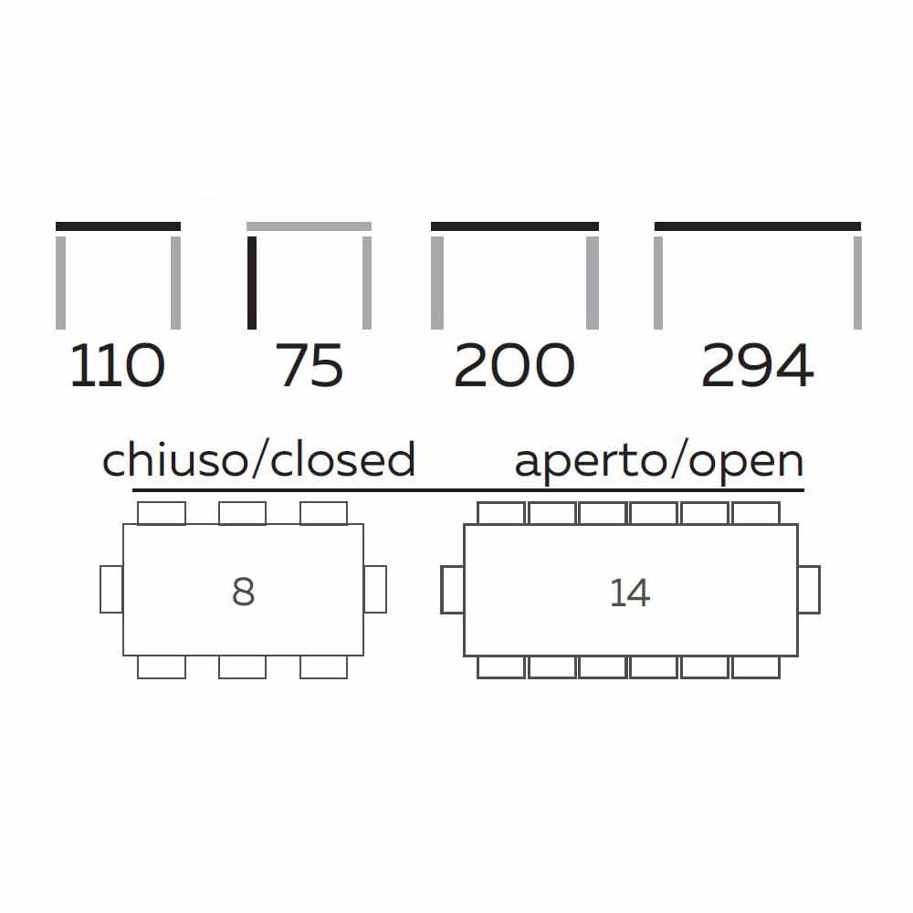 brushed bronze finish metal structure. What makes this table as modern as it is functional is the possibility of extending the top up to a maximum of 294 cm thanks to
